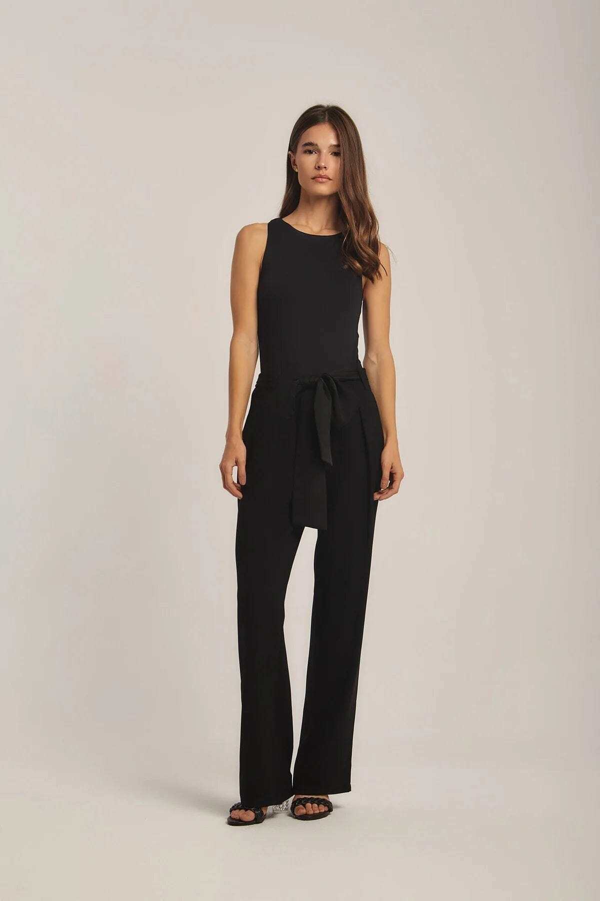 ميزات بنطلون واسع الساق سادة من DALYDRESS
