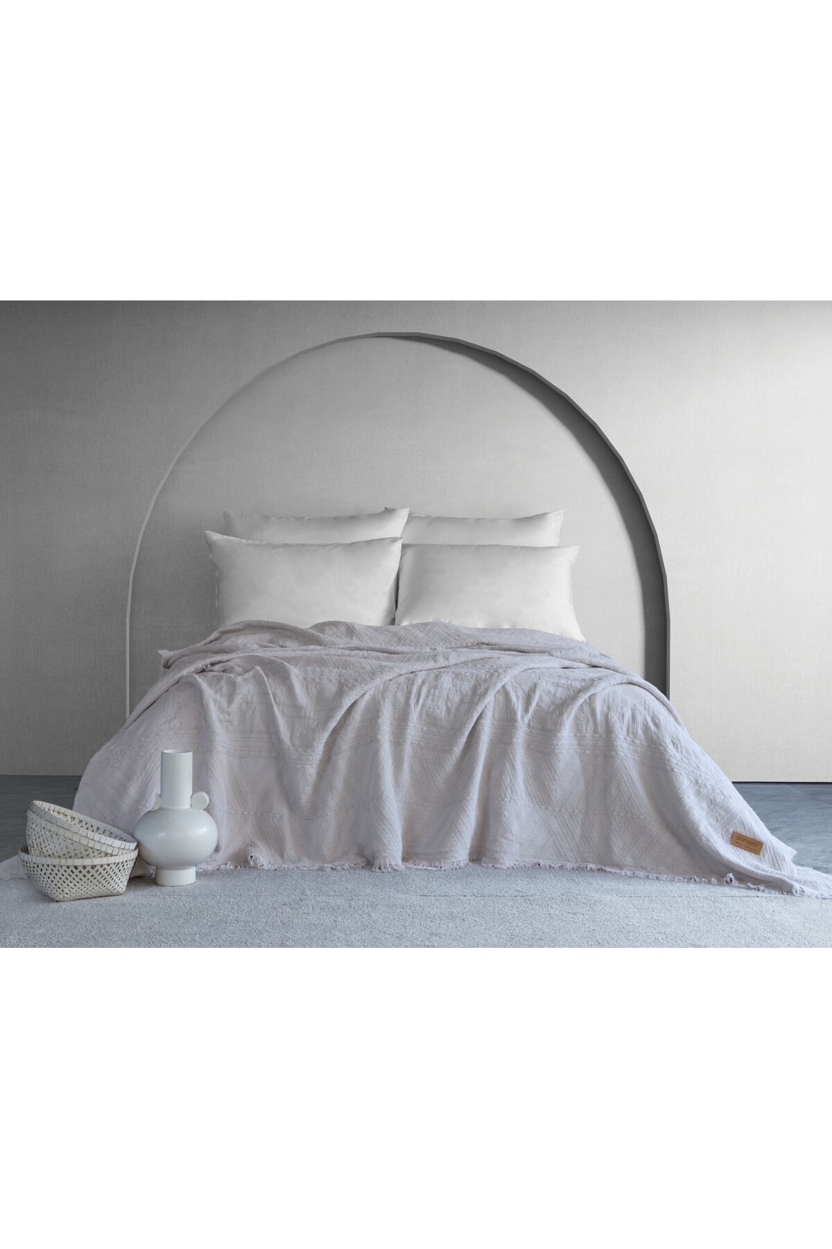 Dantela غطاء سرير بنمط لوميا العرقي - رمادي فاتح