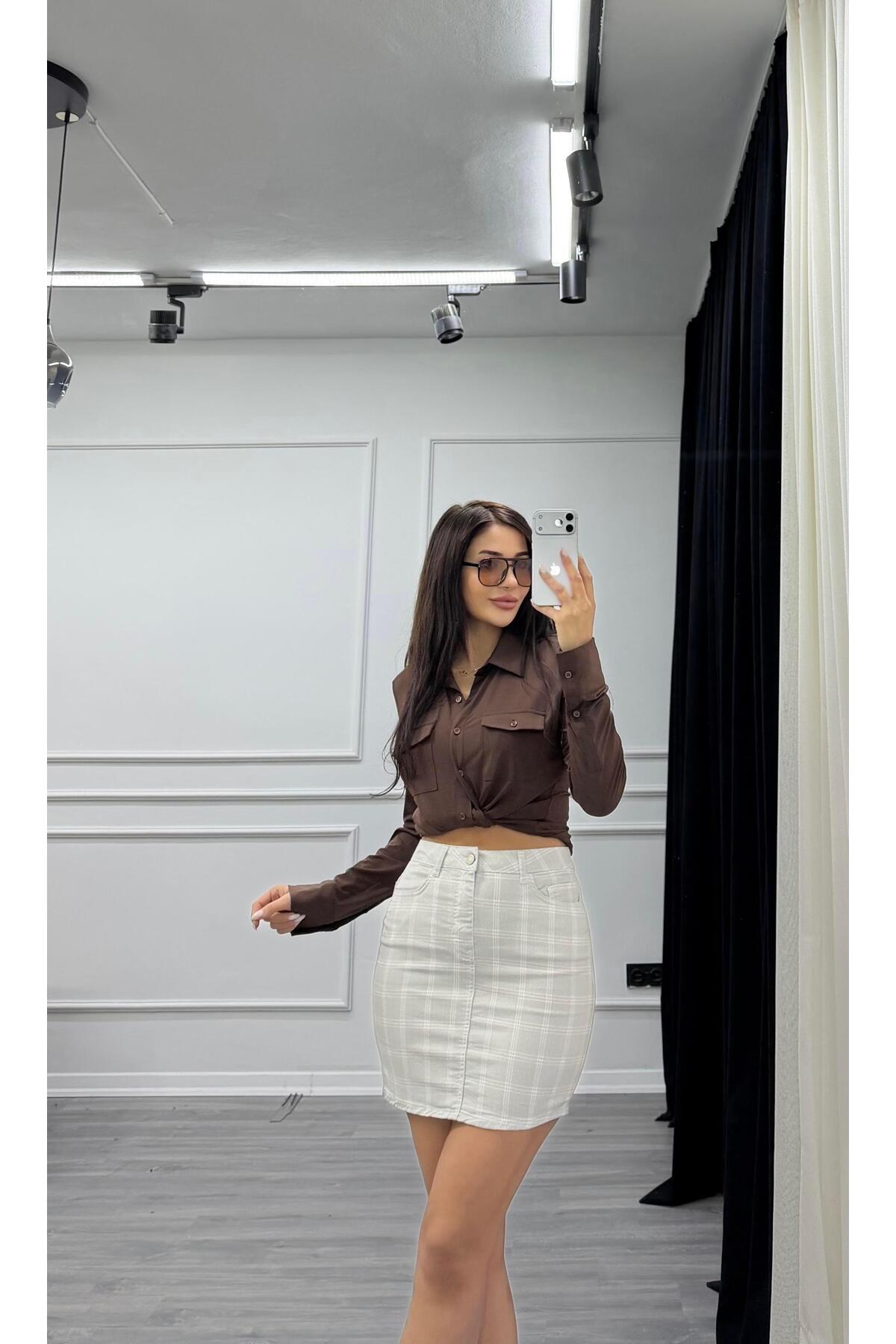 ميزات تنورة قصيرة مربعات ذات أزرار أمامية باللون الرمادي من Daves