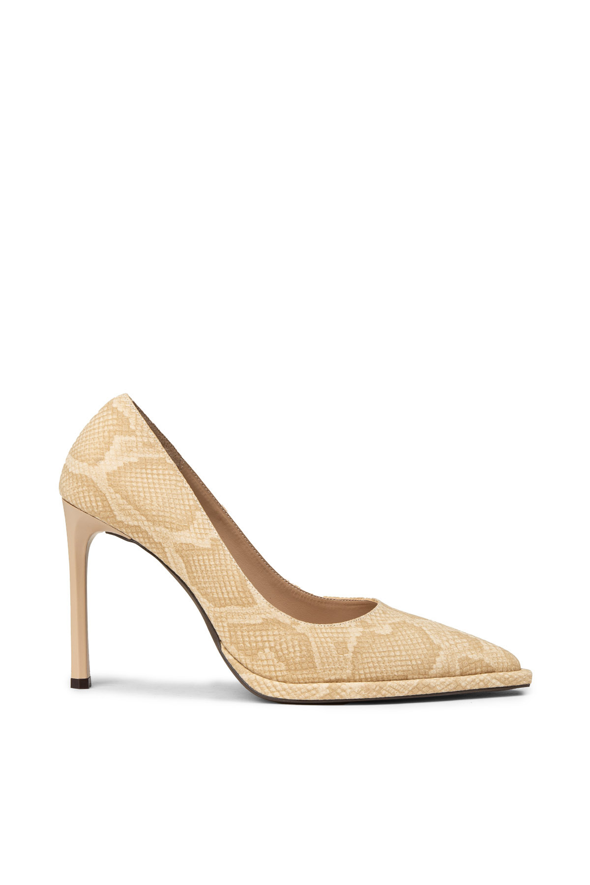 ميزات حذاء نسائي بكعب ستيليتو منقوش باللون البيج من Deery