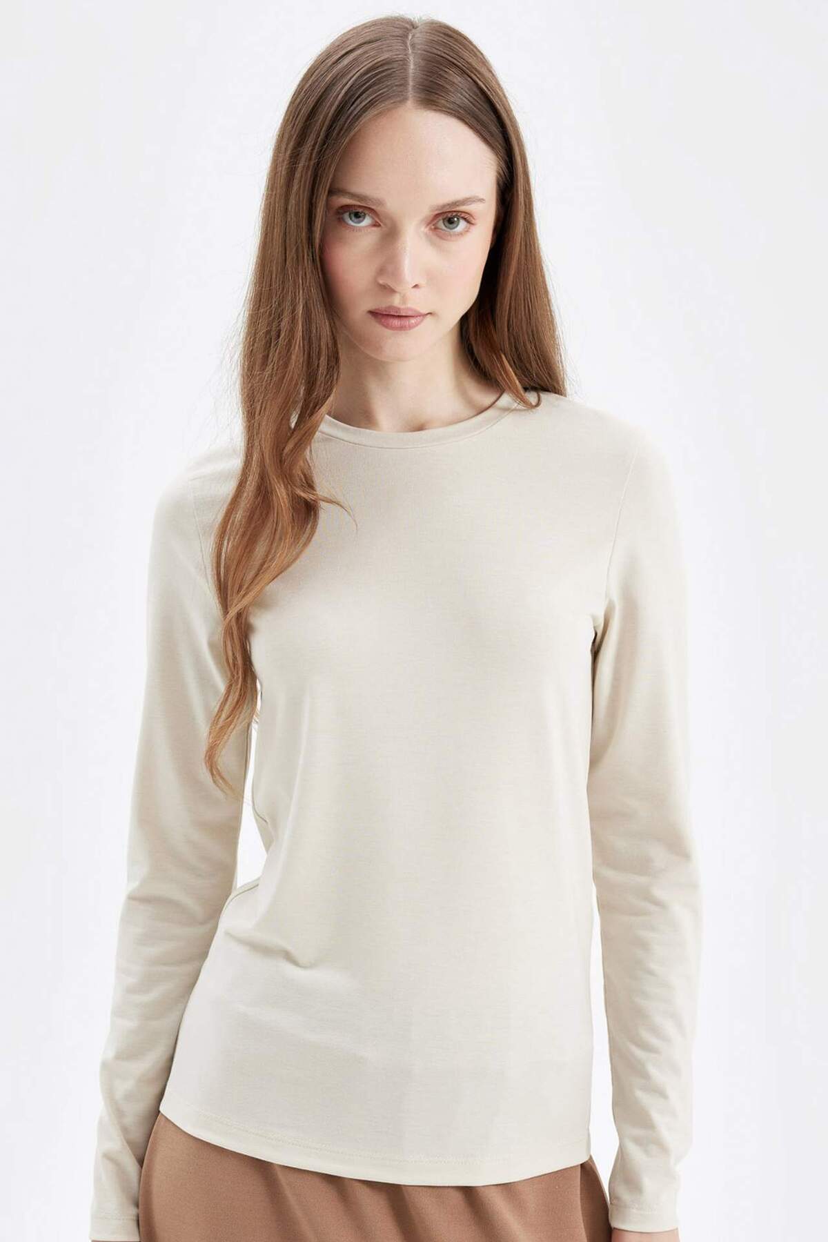 ميزات طاقم الرقبة الأساسية عادي كم طويل تي شيرت D5017ax24au من DeFacto