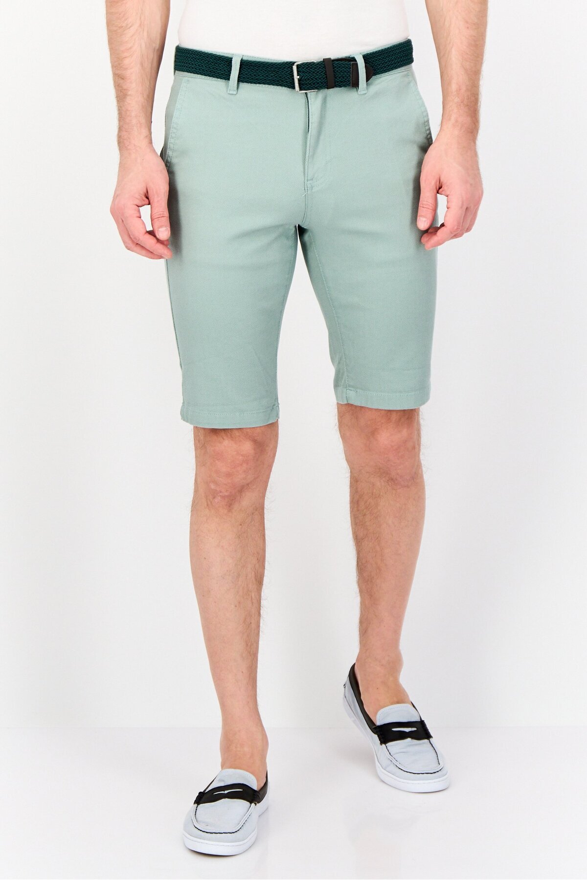 ميزات شورت رجالي أساسي بحزام منقوش، لون رمادي فاتح من DeFacto