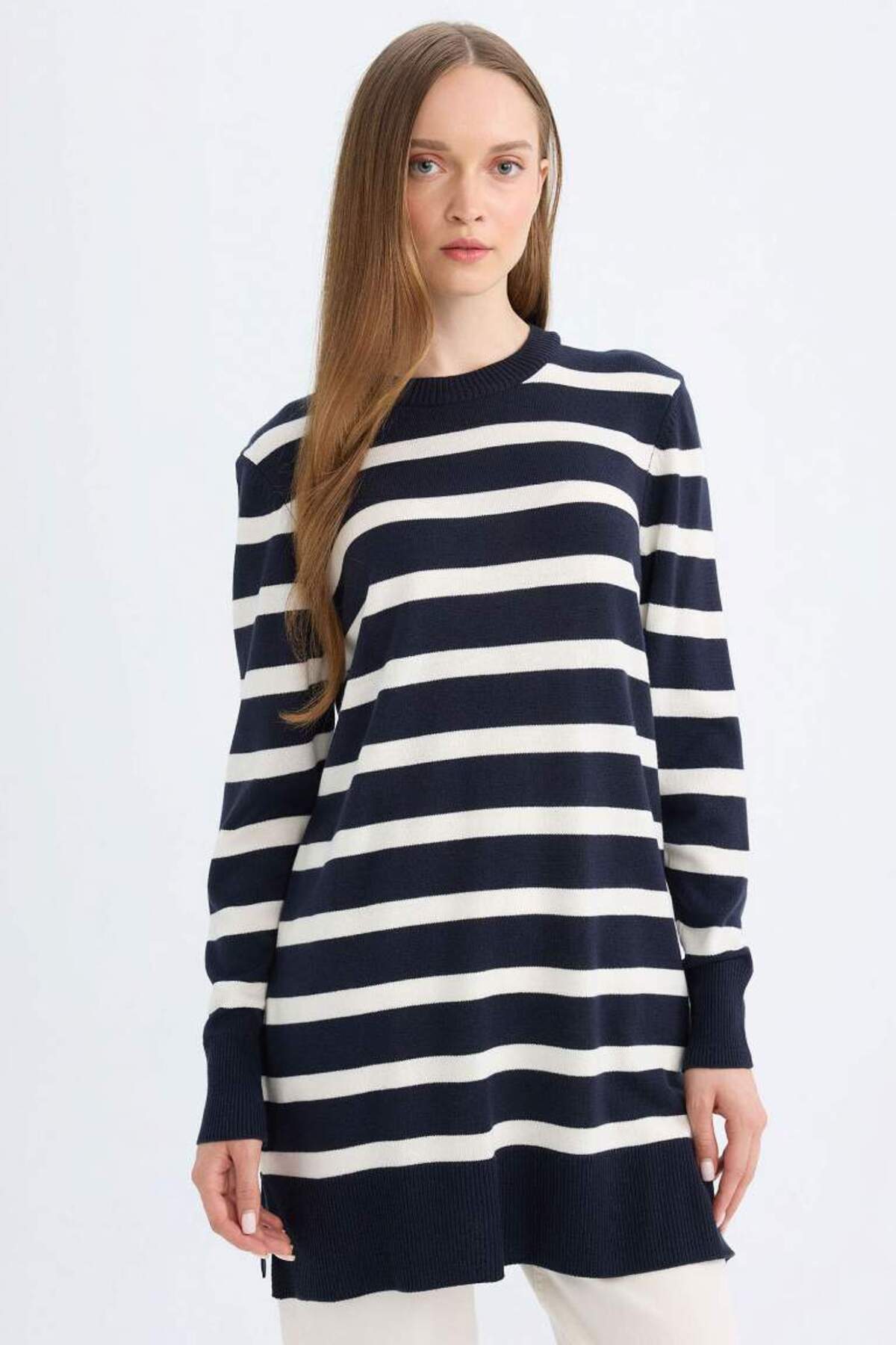 ميزات تونيك مخطط برقبة دائرية وقص عادي من DeFacto