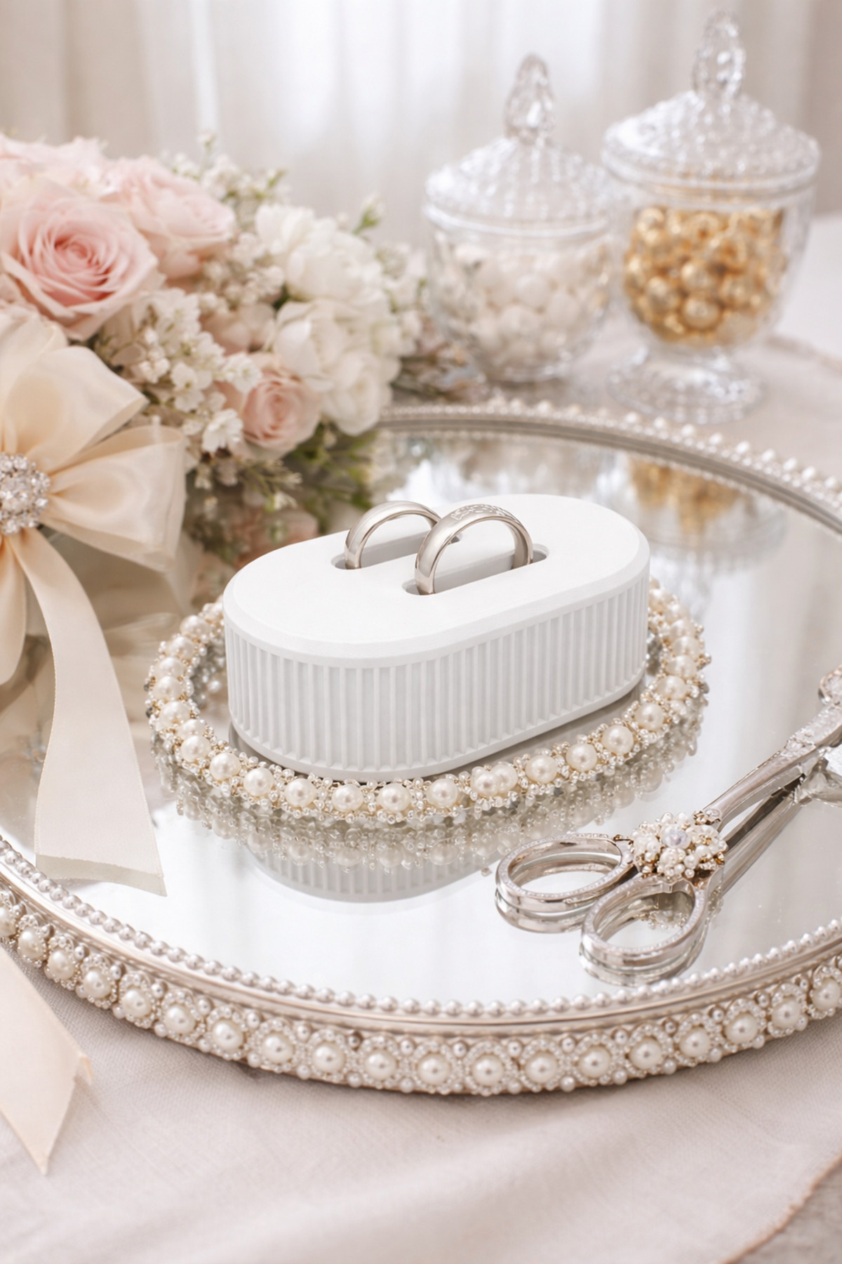 Dekor 🤍 حامل خاتم مزدوج بتصميم بسيط - أبيض