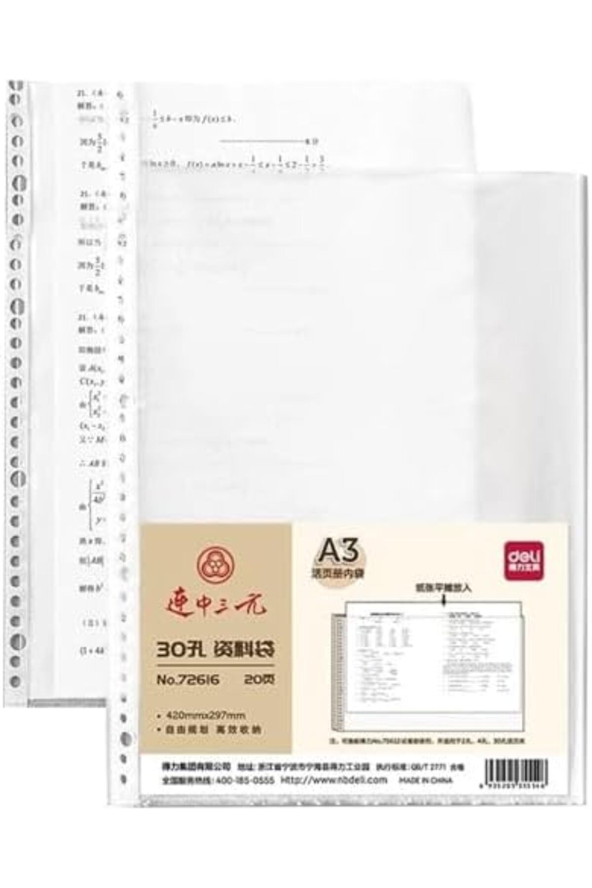Deli واقي ورق A3 40 ميكرون، 20 قطعة (E72616)