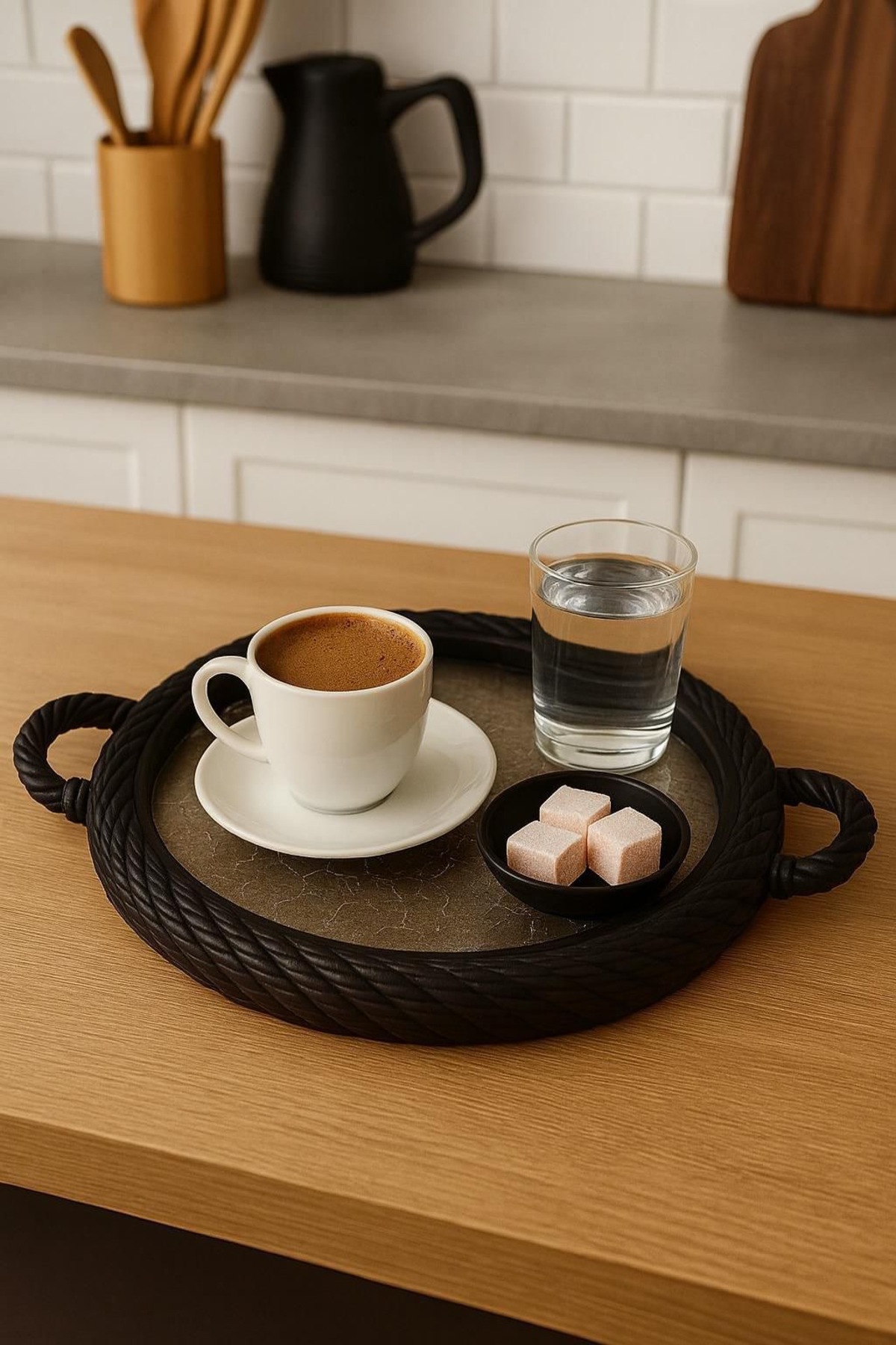 Dem Home صينية تقديم القهوة من البلاستيك الأسود المستدير بنمط شبكي