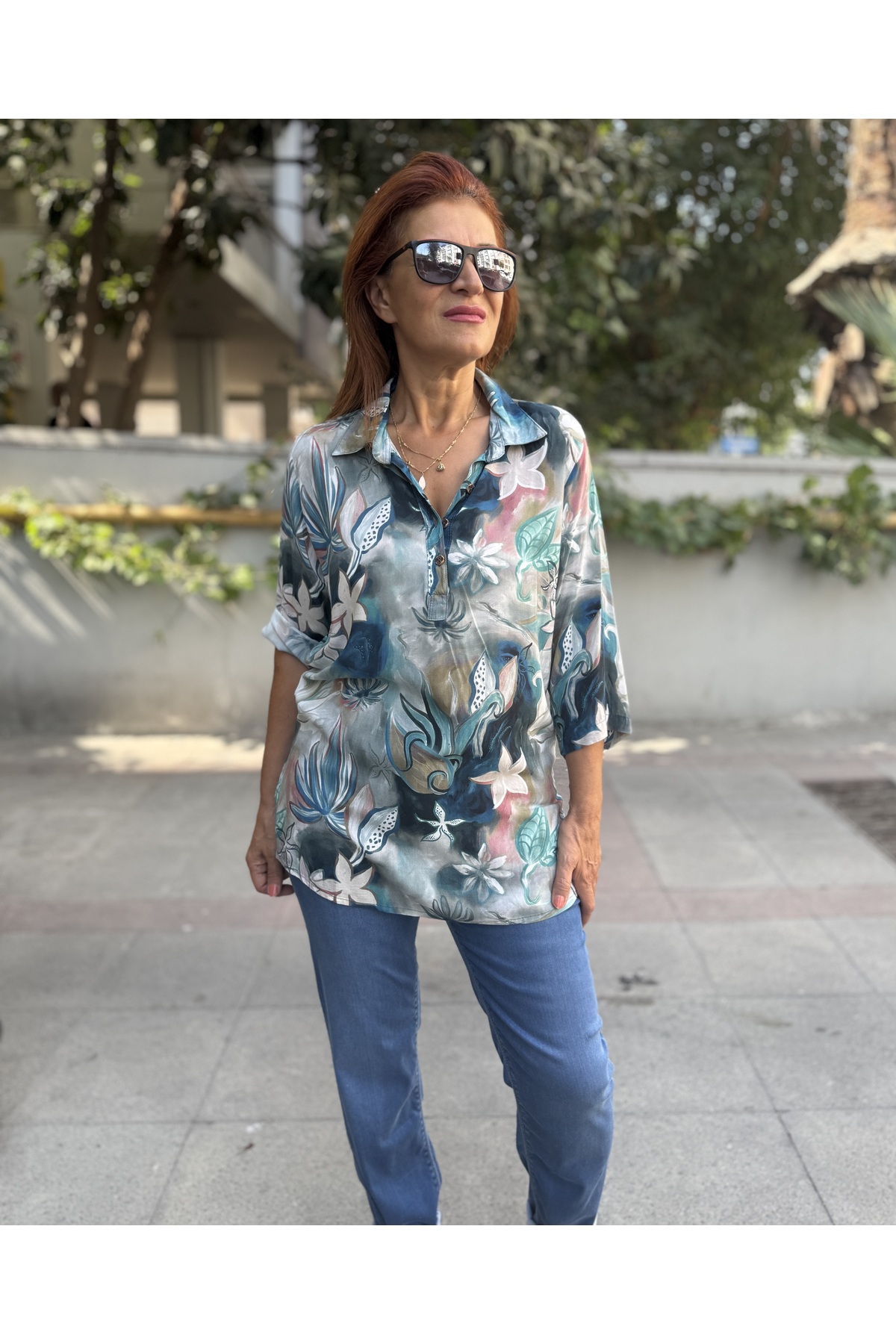 DenizEge قميص أصلي بثلاثة أزرار باللون الأزرق