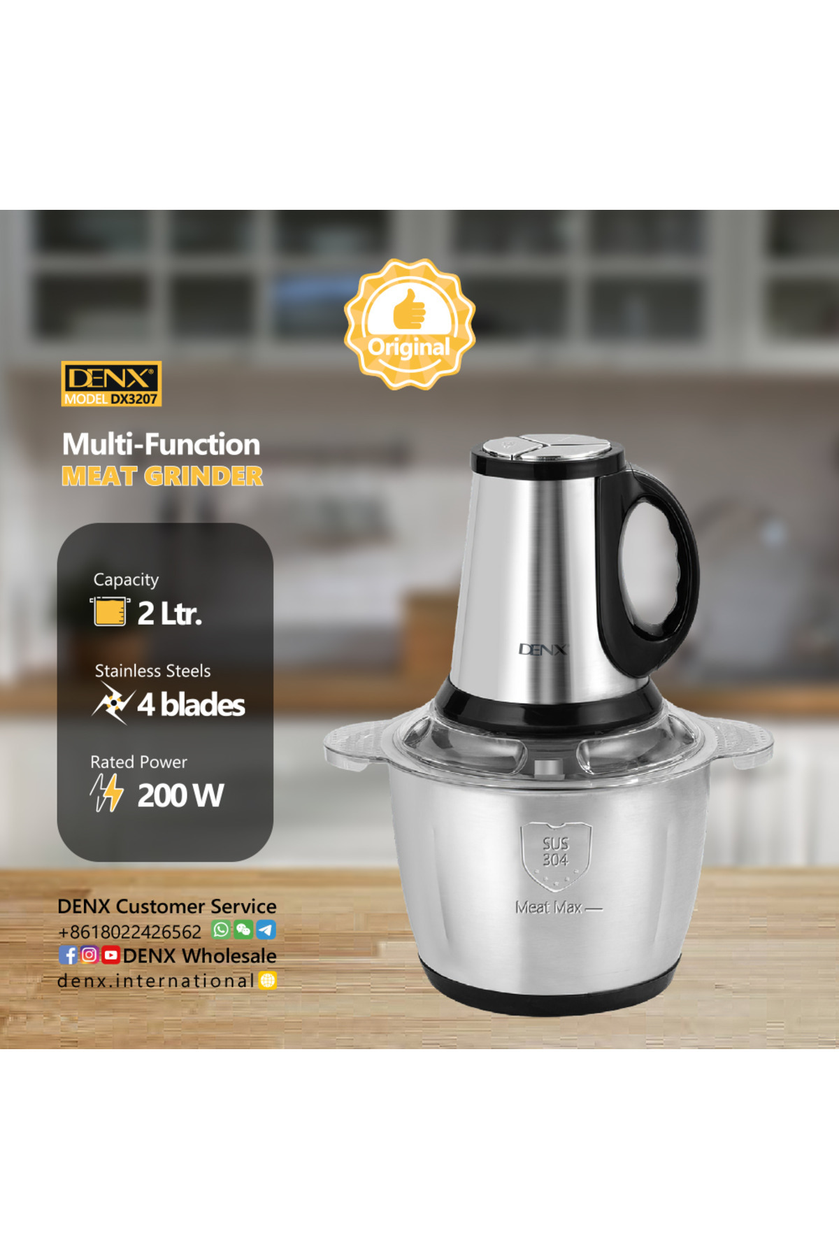 Denx مفرمة لحوم متعددة الوظائف سعة 2 لتر و3 شفرات وقوة 200 واط