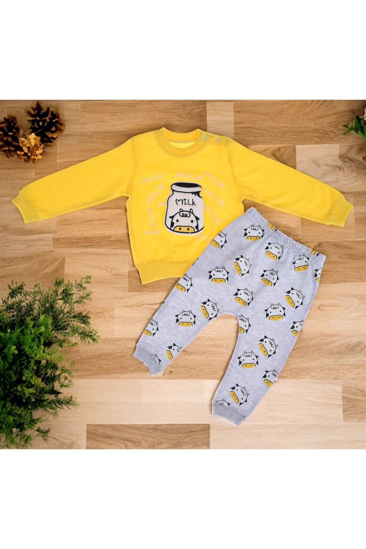 DERİNBEBE أطقم من القماش القطني الممشط بنمط حليب الأطفال المبهجة