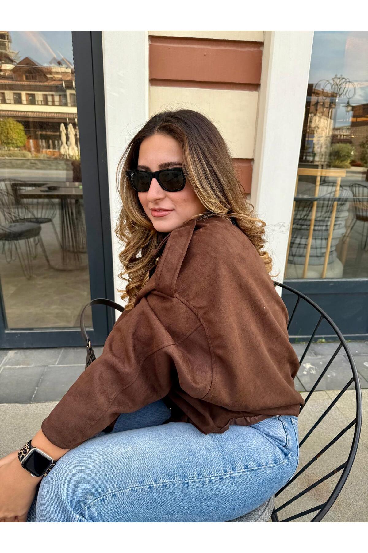 derrymore سترة من جلد الغزال قصة فضفاضة فاخرة وناعمة