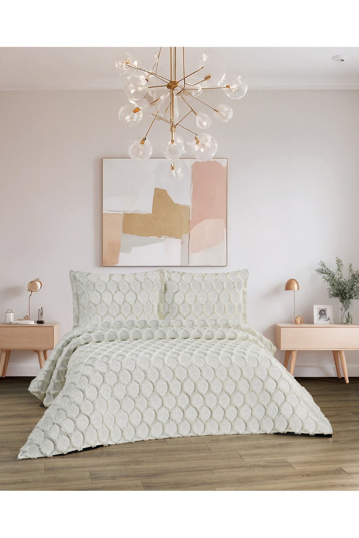 ميزات غطاء سرير مزدوج مكون من 3 قطع بنمط قرص العسل من diabella