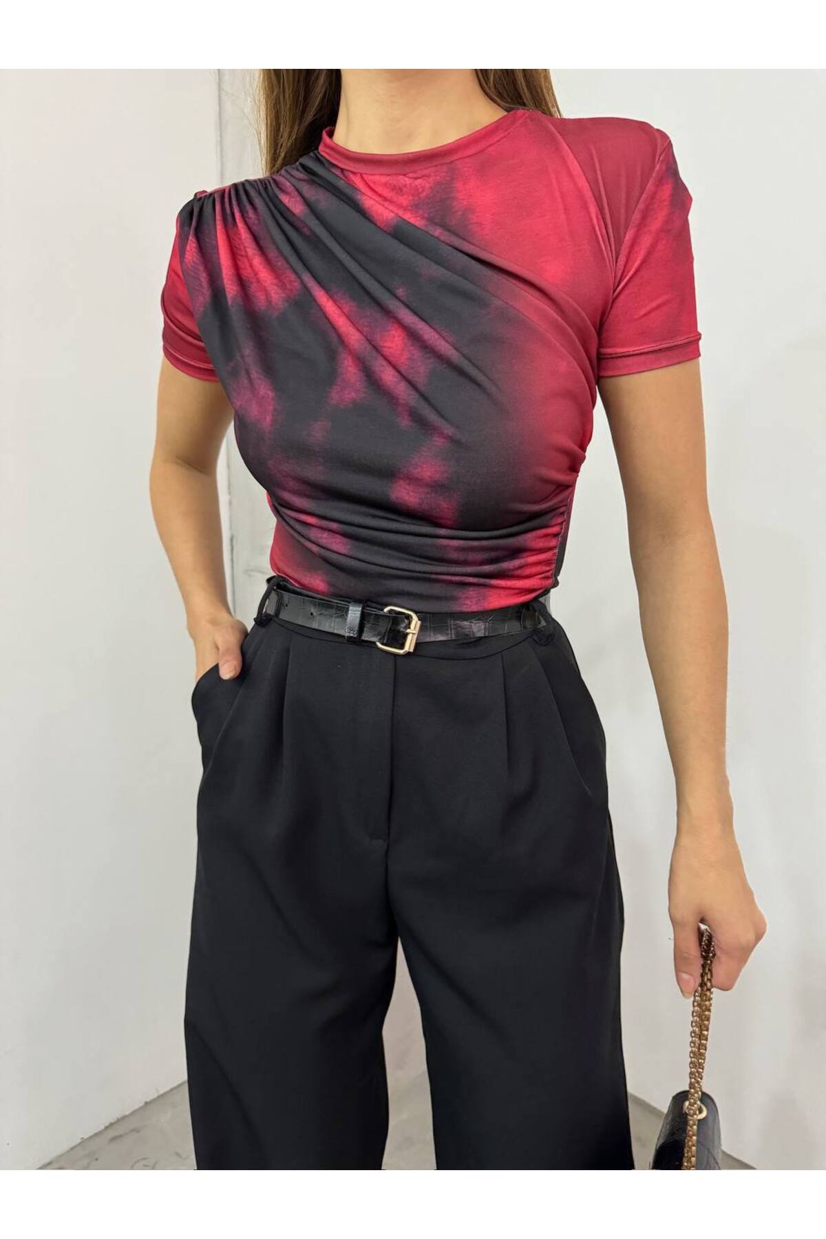 ميزات بلوزة ذات ياقة متدلية باللون العنابي من dignus