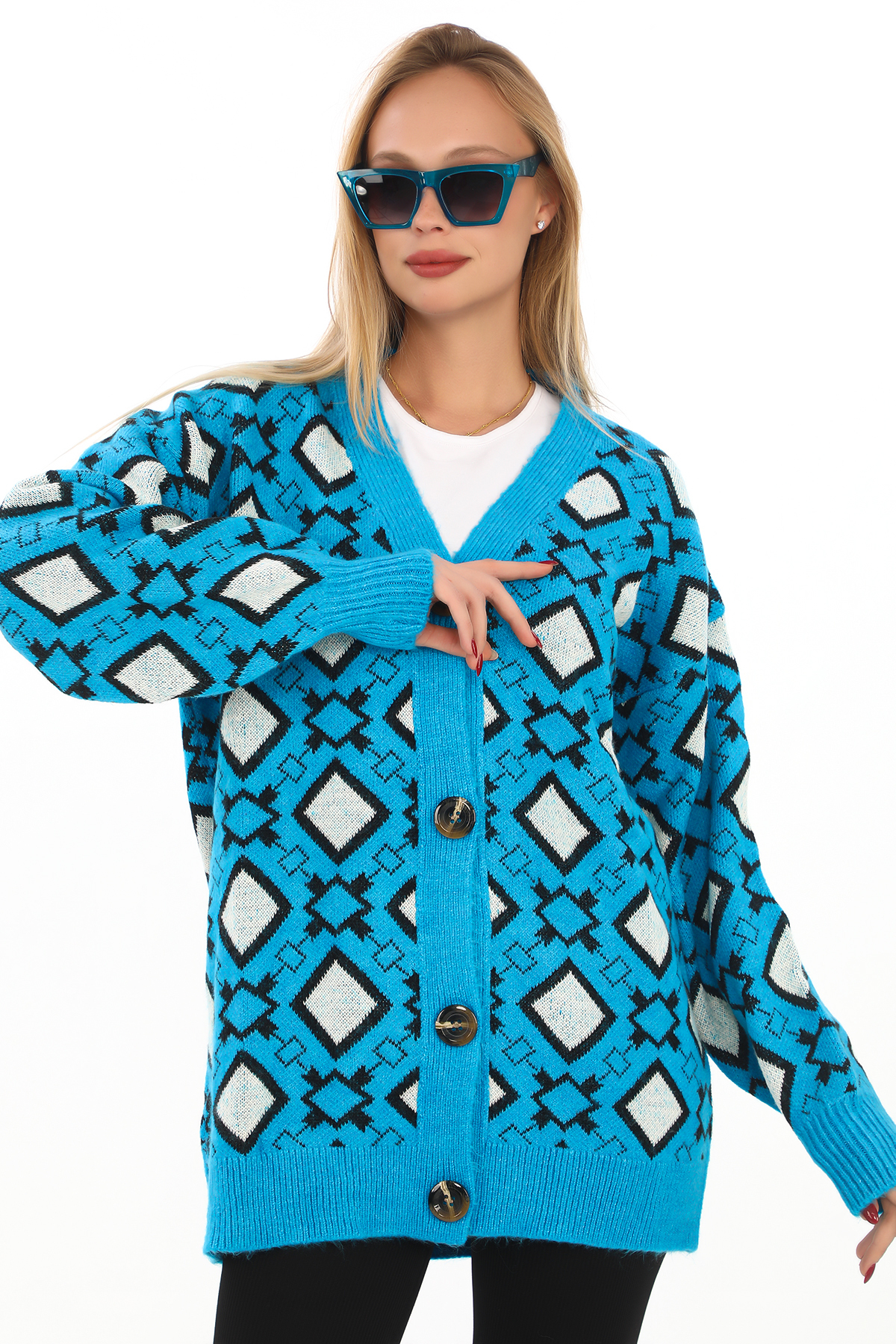 ميزات سترة صوفية محبوكة بنمط مربع وأزرار من dignus