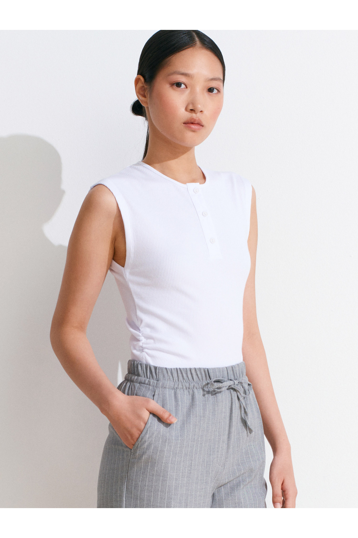 ميزات 21098 زر بدون أكمام - أبيض من Dilvin