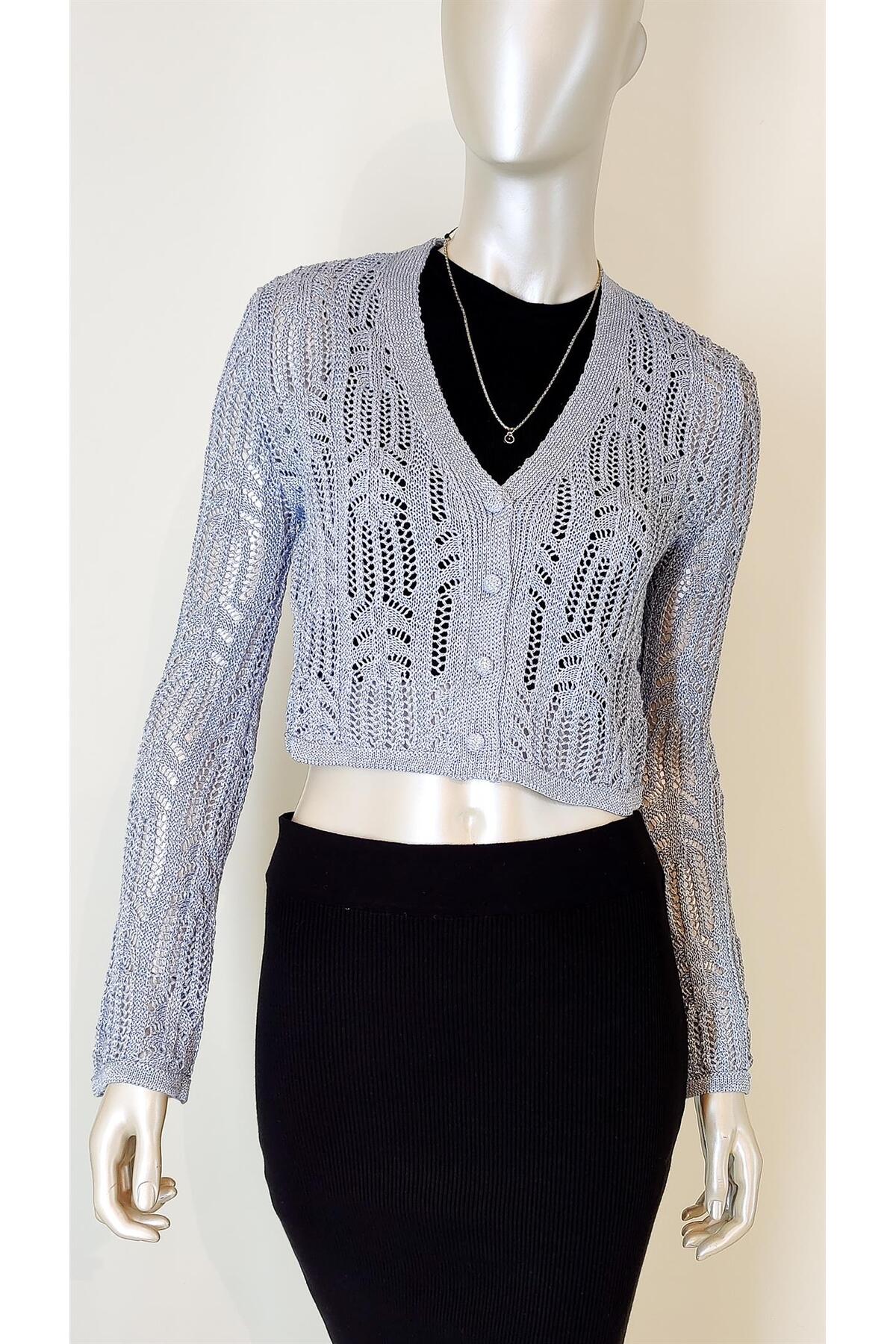 Dilvin 60184 سترة صوفية بنمط مخرم ورقبة على شكل حرف V
