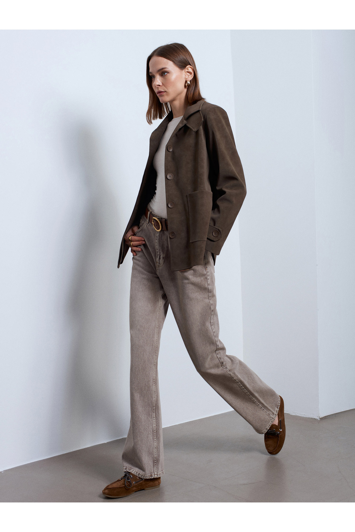 ميزات 60778 سترة من جلد الغزال - كاكي من Dilvin
