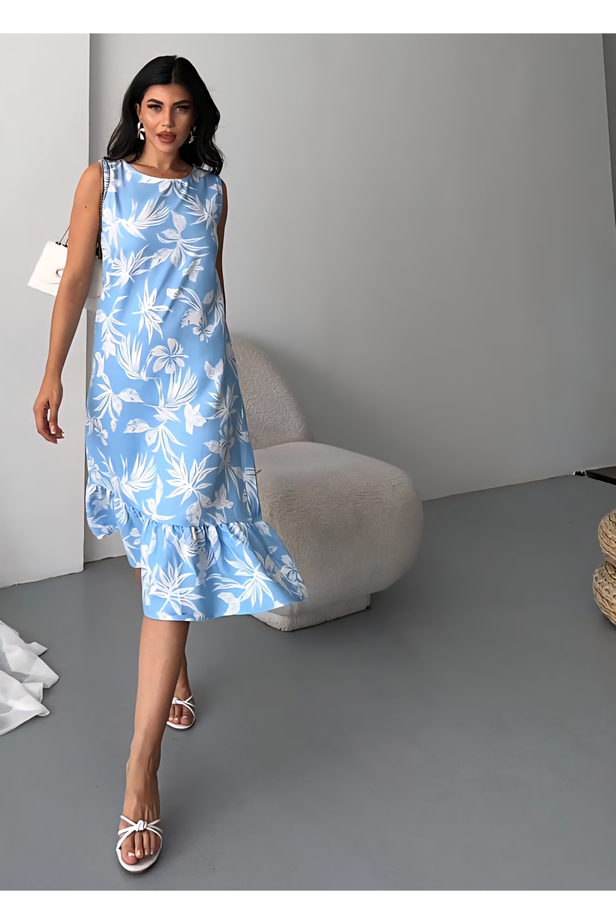 ميزات فستان بحمالات منقوشة بالزهور من DİMA