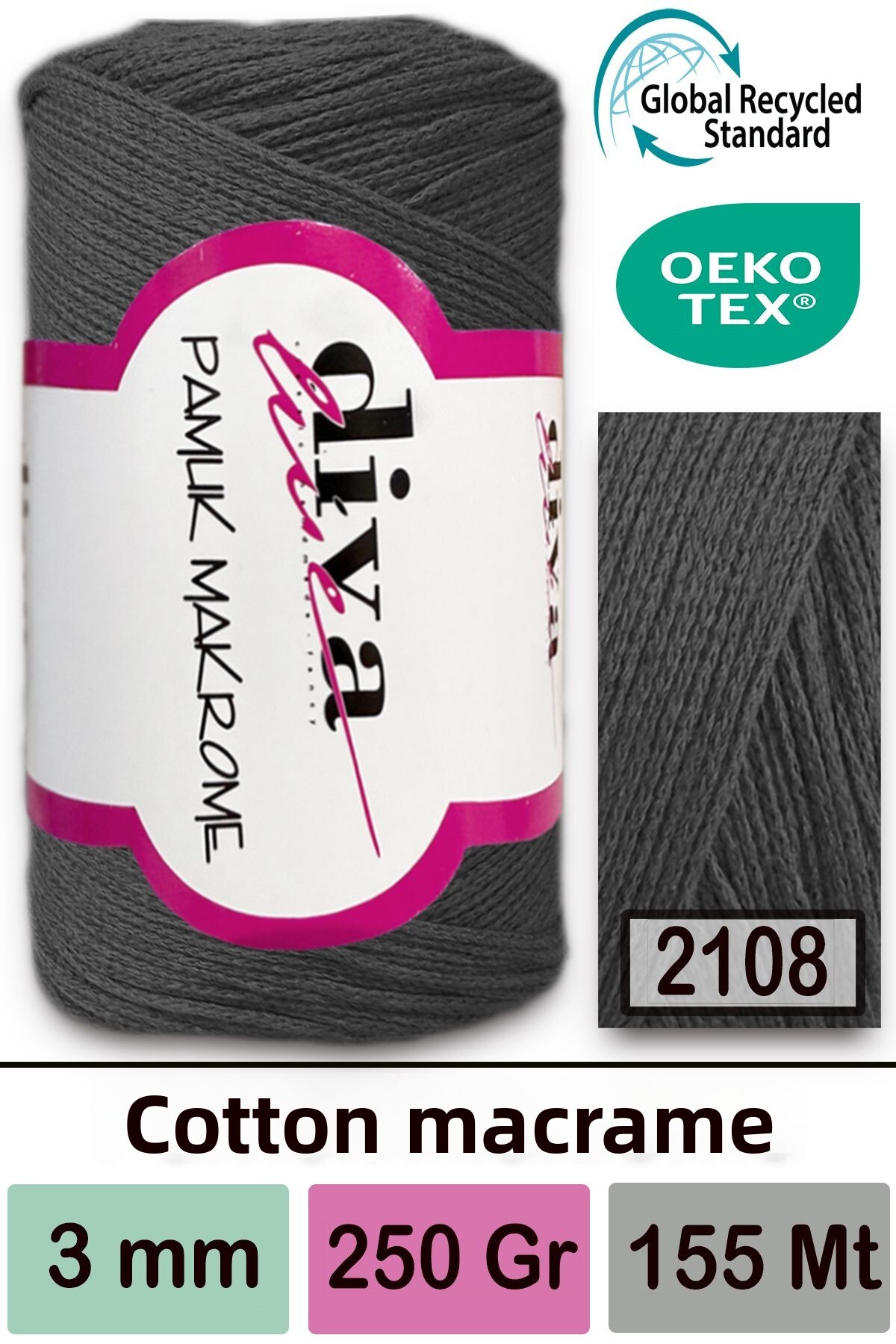 Diva İplik ديفا قطن مكرامية 2108 أنثراسايت