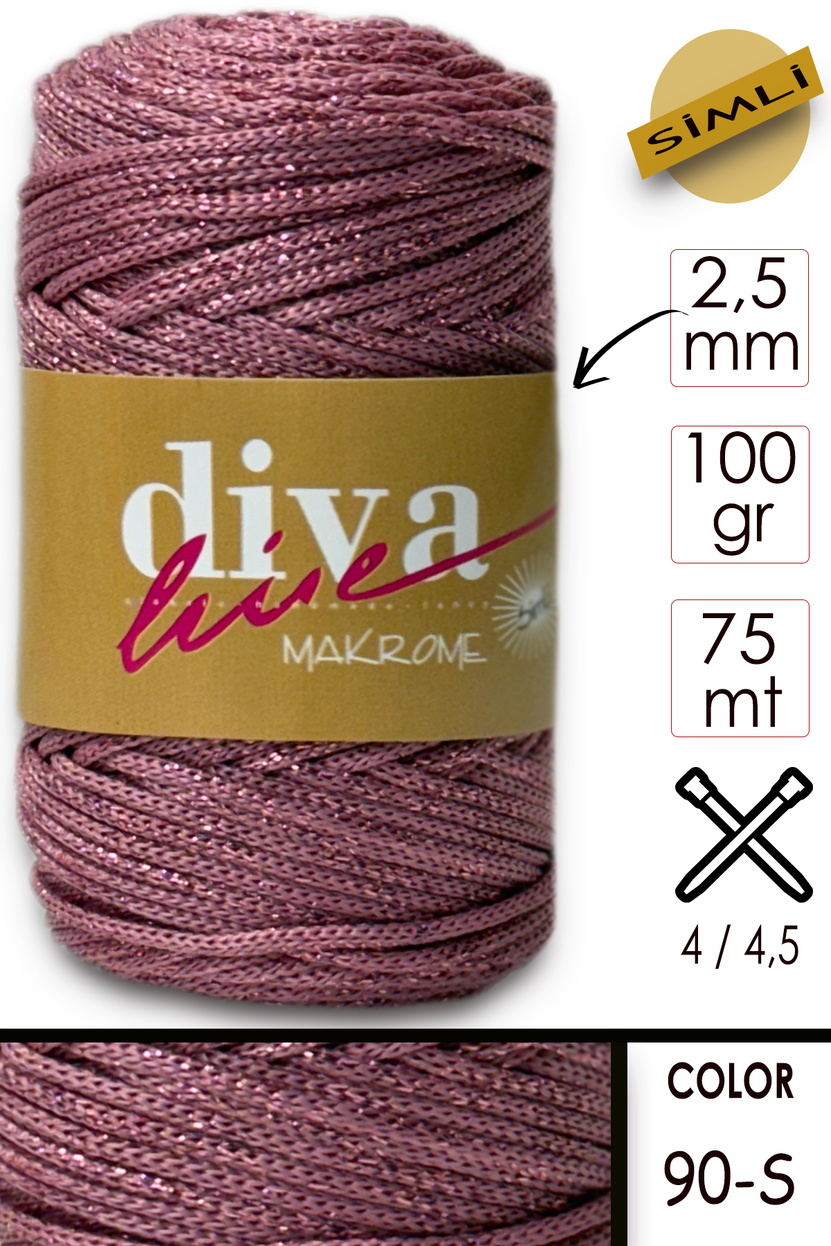 Diva İplik ديفا مكرميه خيط جليتر 90 ثانية داستي روز