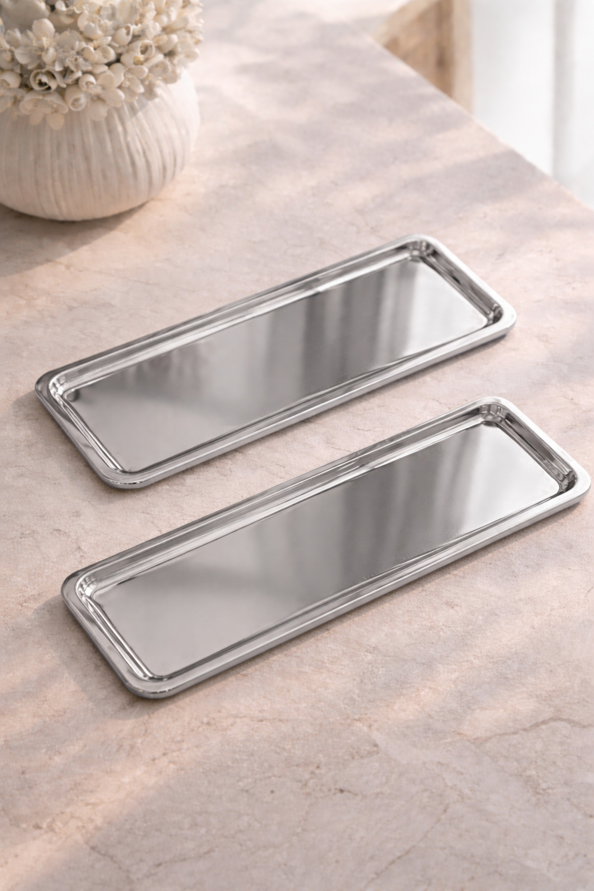 ميزات 2 قطعة من صينية تقديم القهوة المستطيلة المصنوعة من الفولاذ المقاوم للصدأ باللون الفضي من DİVAYS