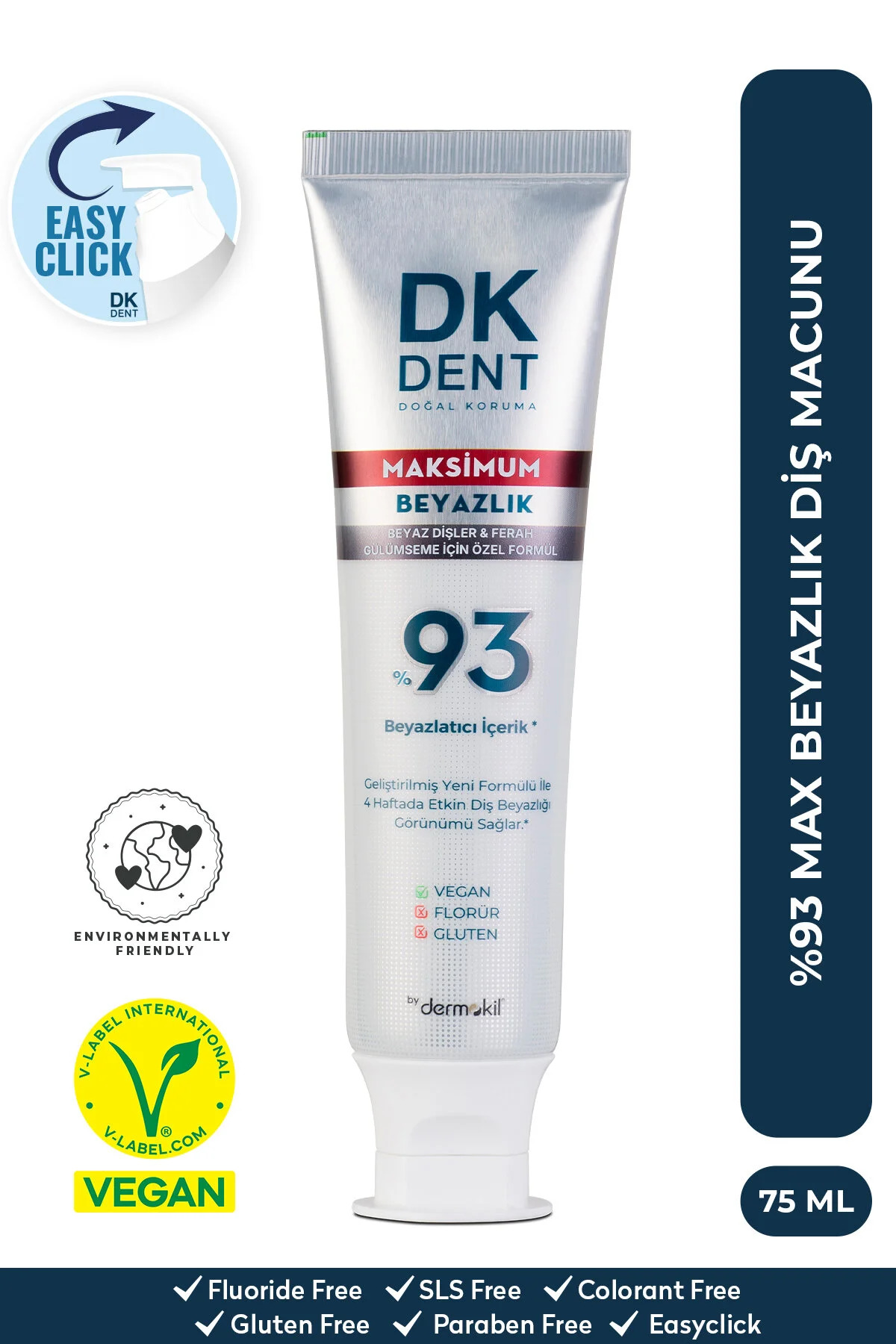 ميزات معجون أسنان مبيض بحد أقصى بنسبة 93%، 75 مل من DKDENT