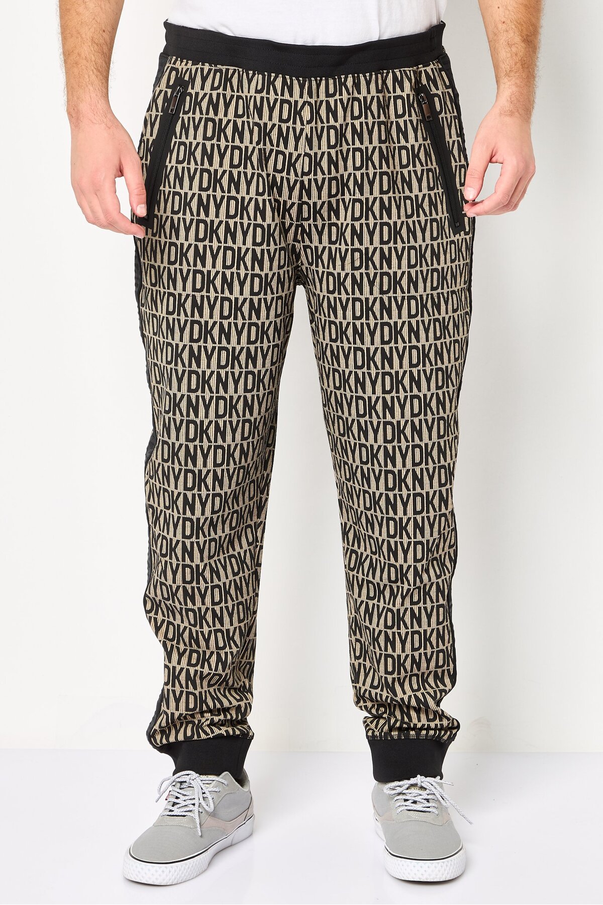 Dkny بنطال رياضي رجالي بقصّة عادية ونقشة مونوغرام، متعدد الألوان