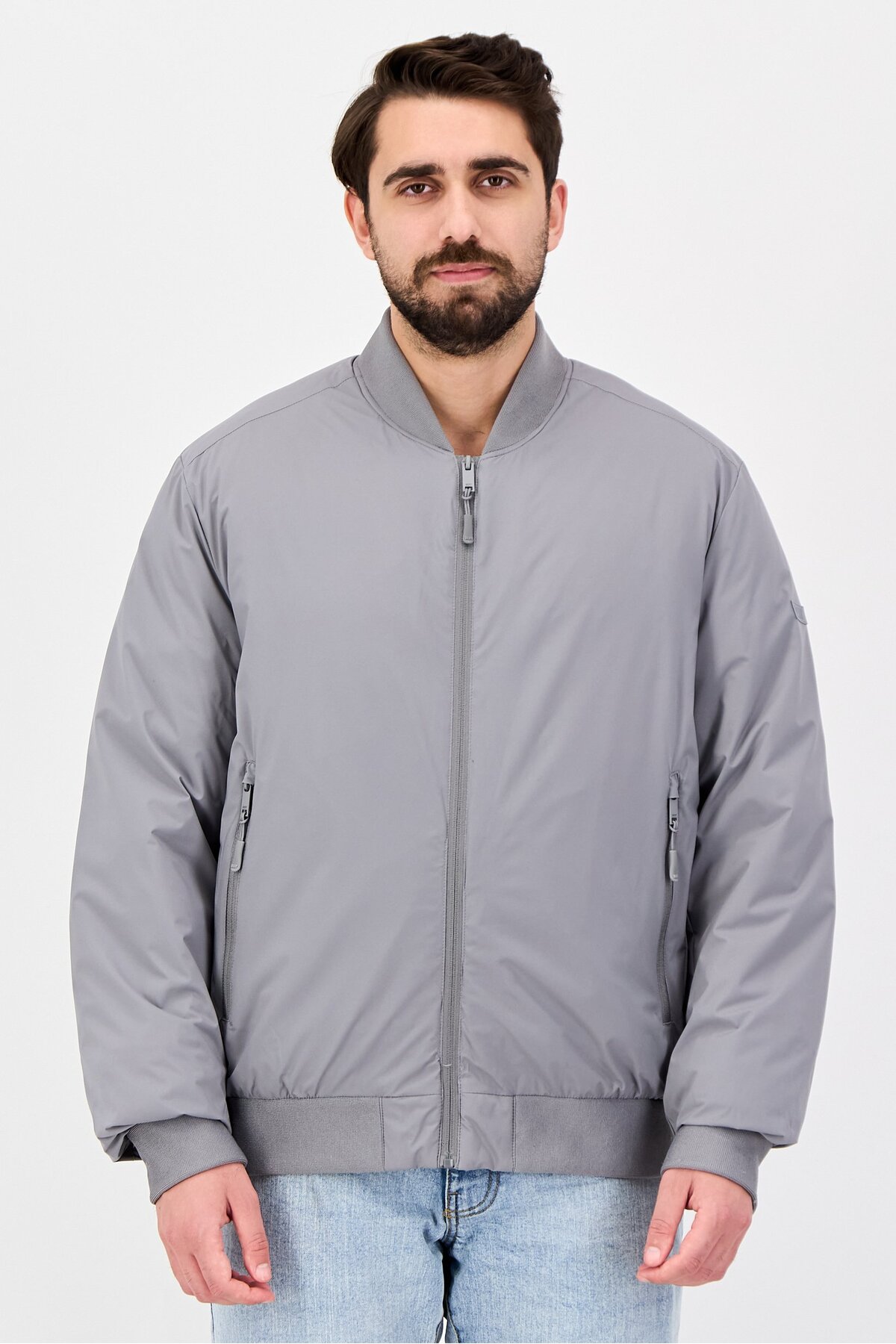 ميزات جاكيت رجالي بأكمام طويلة سادة، رمادي من Dkny