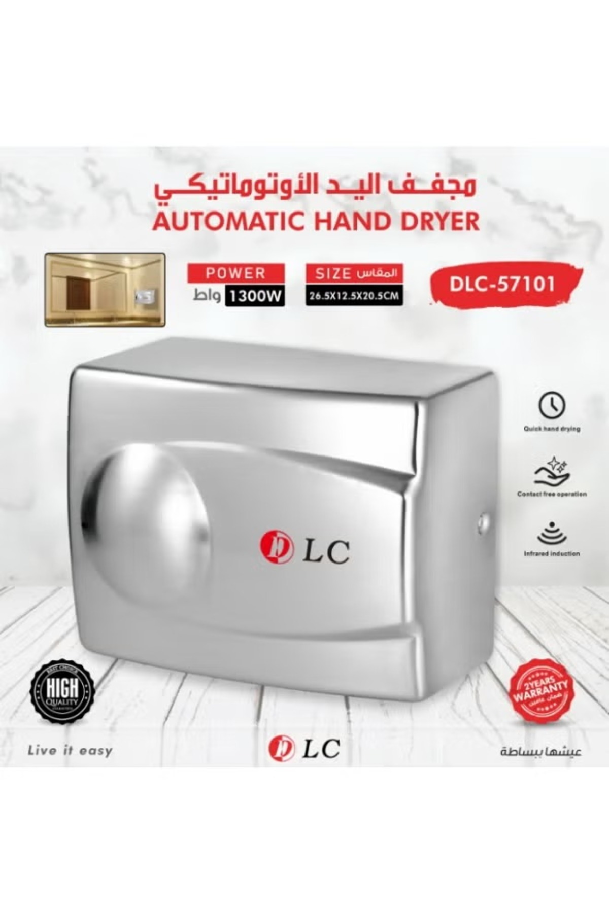 DLC مجفف الأيدي الأوتوماتيكي 1300 واط
