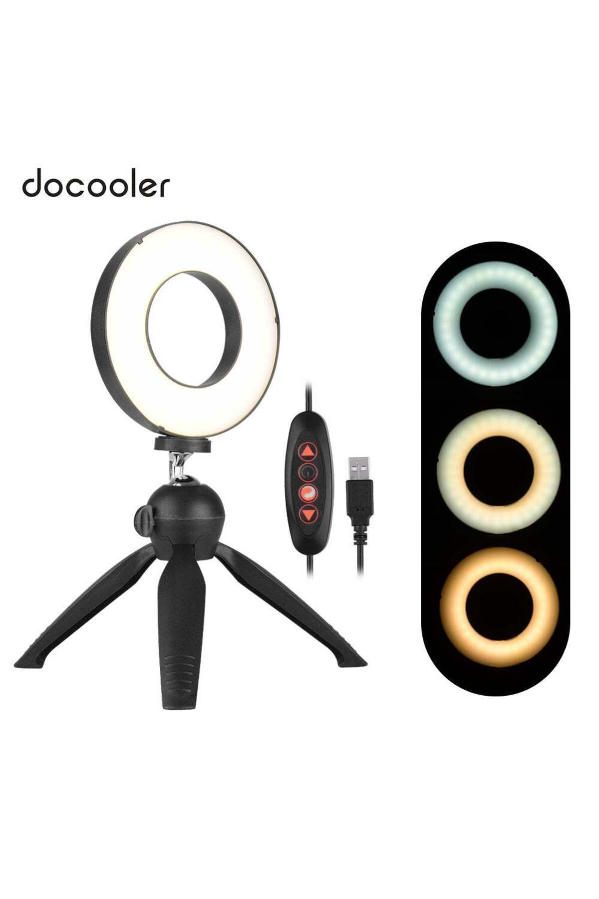 ميزات طقم إضاءة حلقية LED صغيرة قابلة للتعتيم، مقاس 4.6 بوصة، 3 أوضاع إضاءة، أسود/أبيض من Docooler