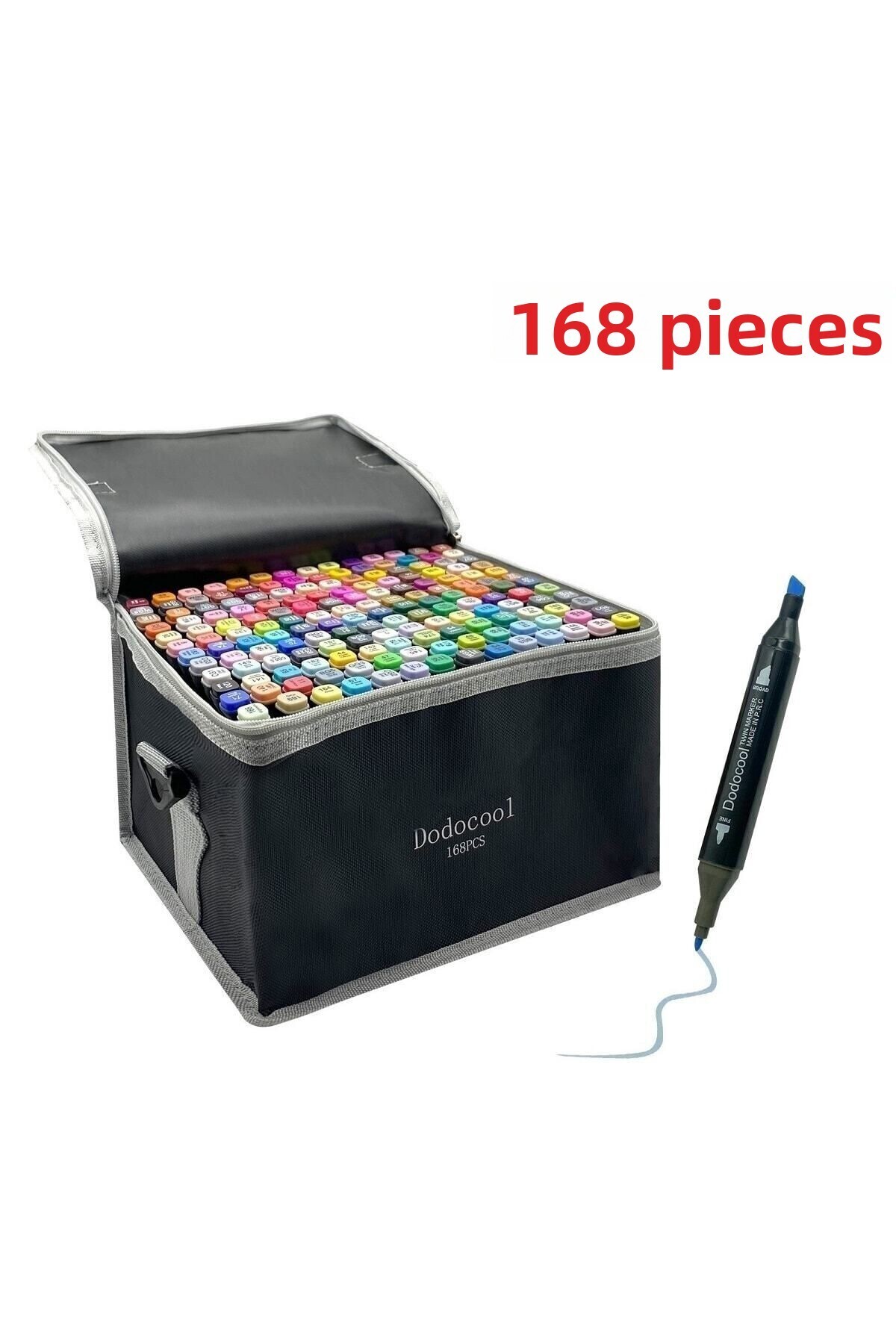 Dodocool مجموعة أقلام رسم فنية ذات طرف مزدوج مكونة من 168 قطعة، قلم رسم ممتاز مع حقيبة