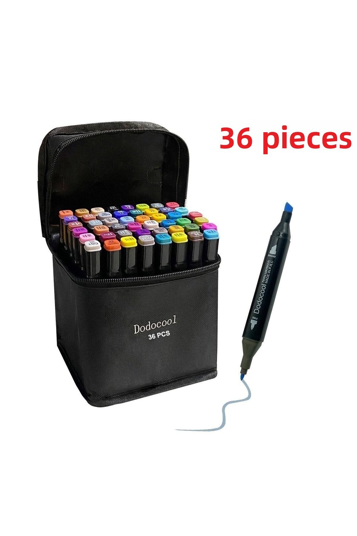 Dodocool مجموعة أقلام رسم فنية ذات رأس مزدوج مكونة من 36 قطعة من قلم رسم ممتاز مع حقيبة