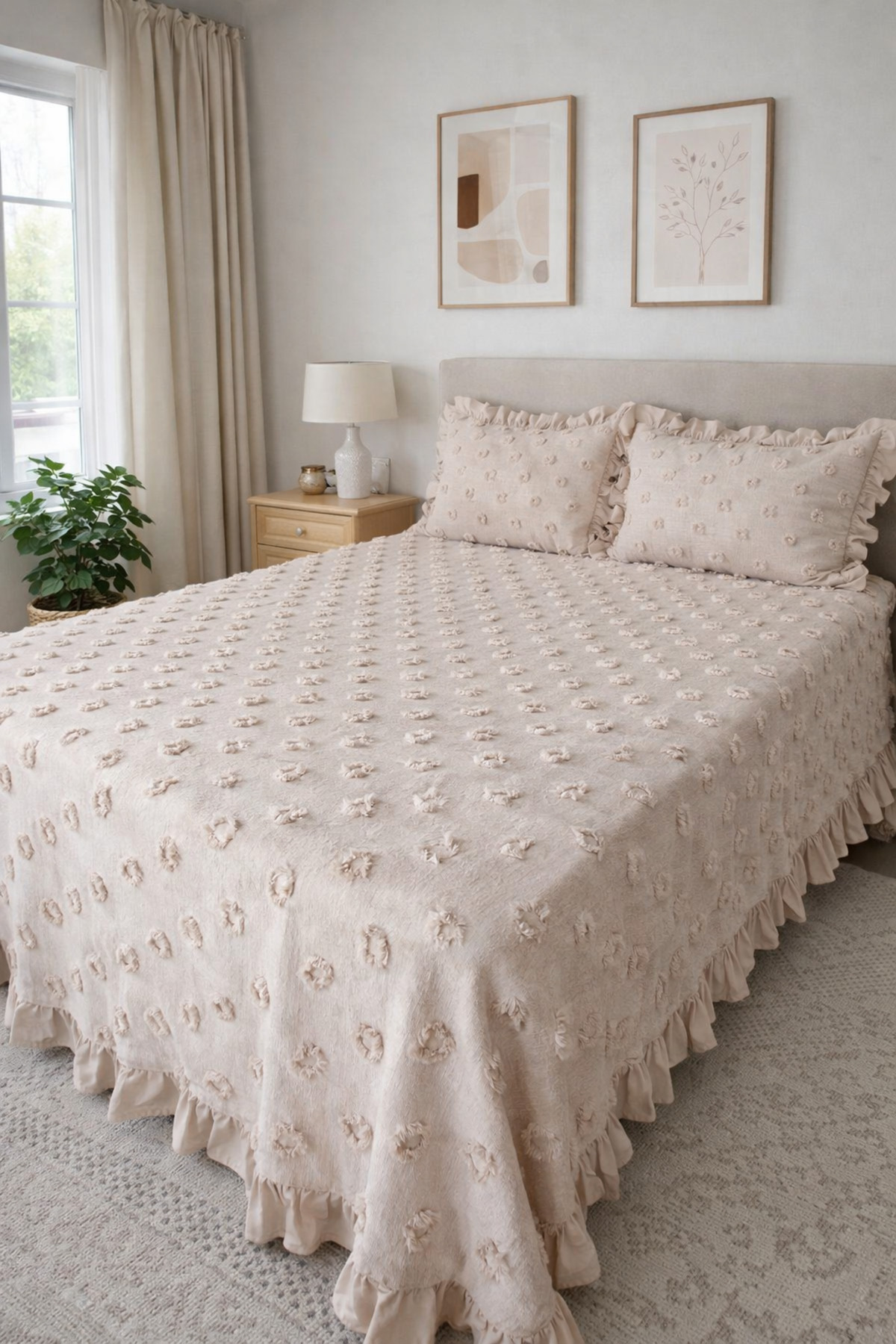 ميزات غطاء سرير مكشكش مزدوج من Doğa