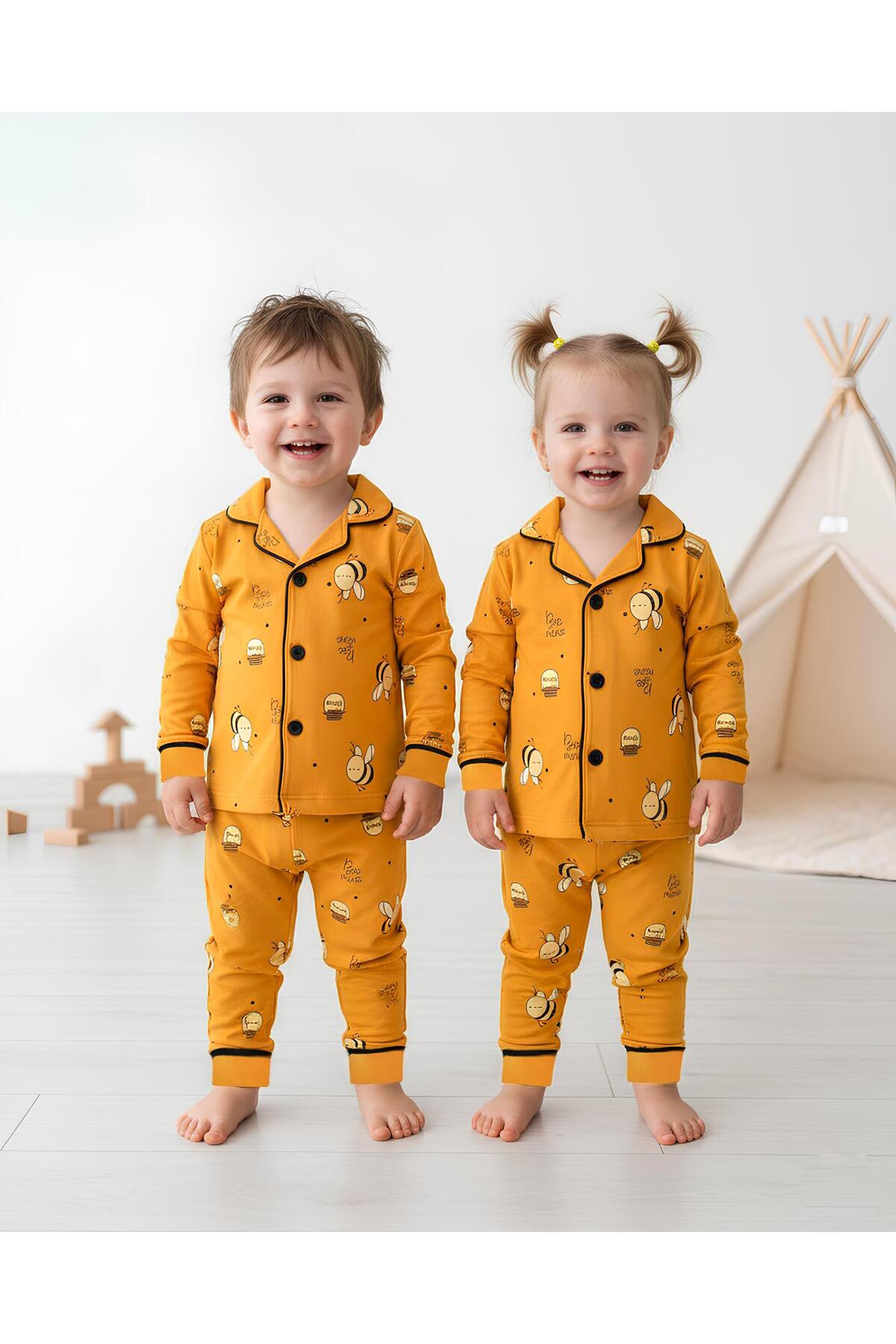 dolaş kids طقم بيجامة مطبوع عليه طبعات النحل