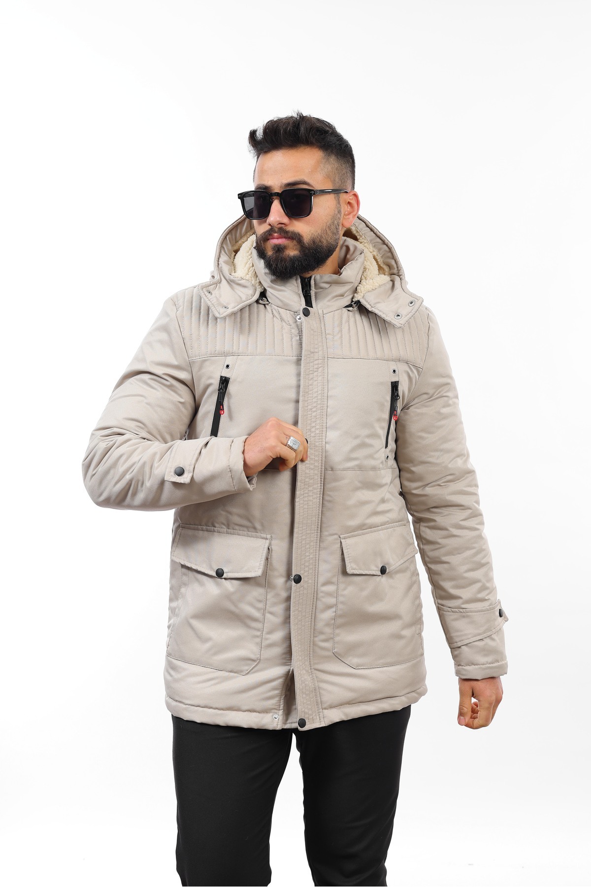 ميزات معطف شتوي طويل مع فرو من الداخل من DOXGER