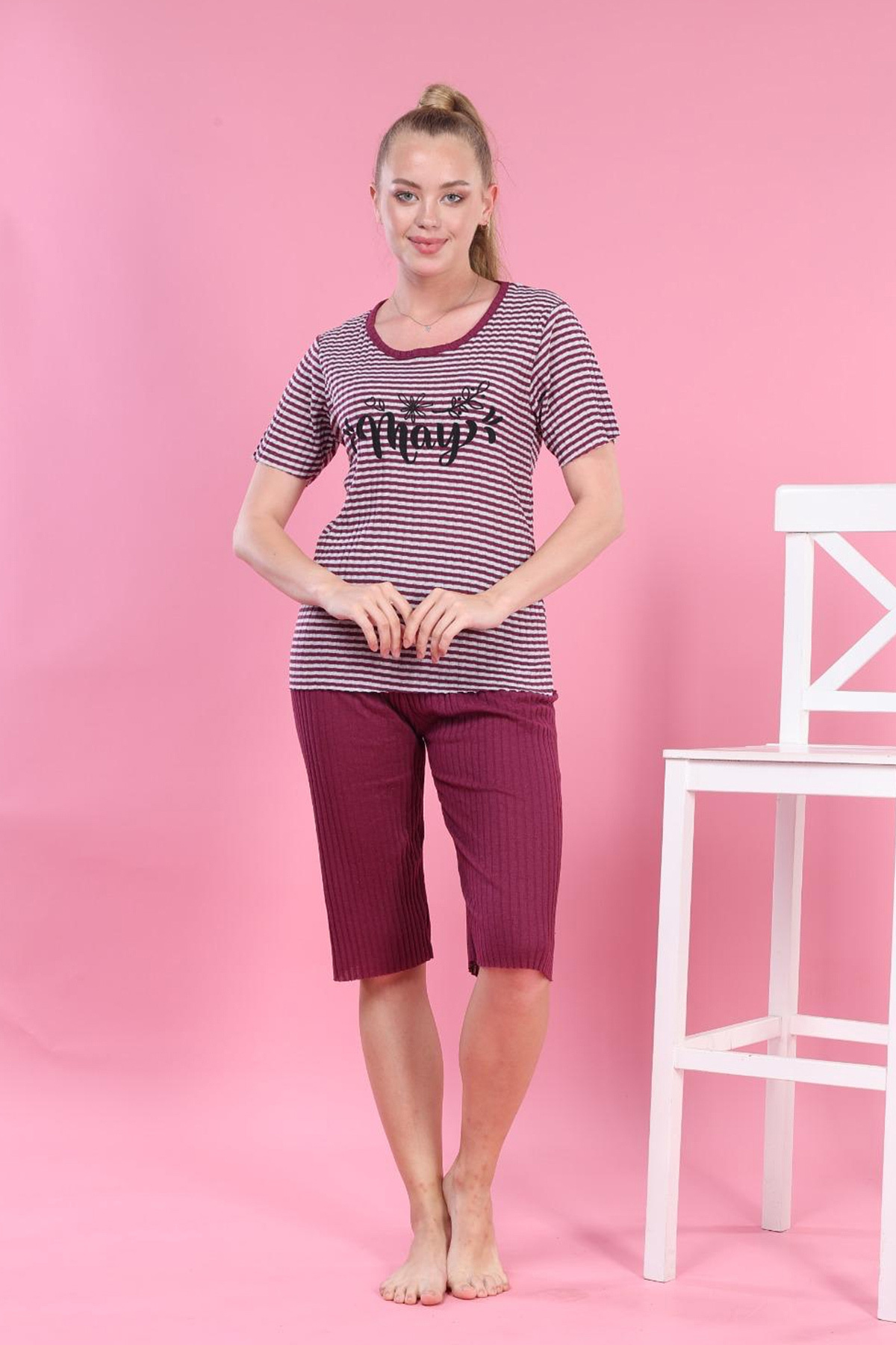 ميزات طقم بيجامة كابري مخطط من DPARİS