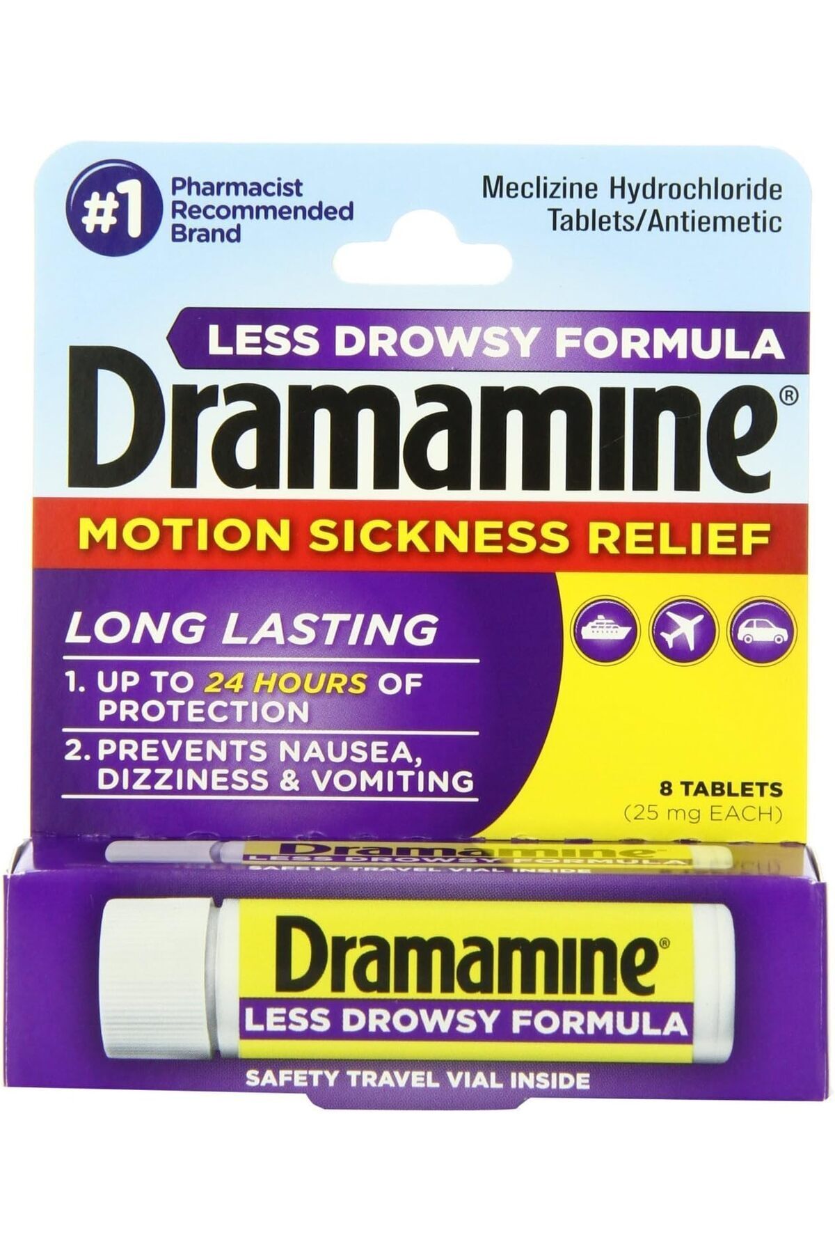 Dramamine أقراص أقل نعاسًا طوال اليوم، 8 أقراص