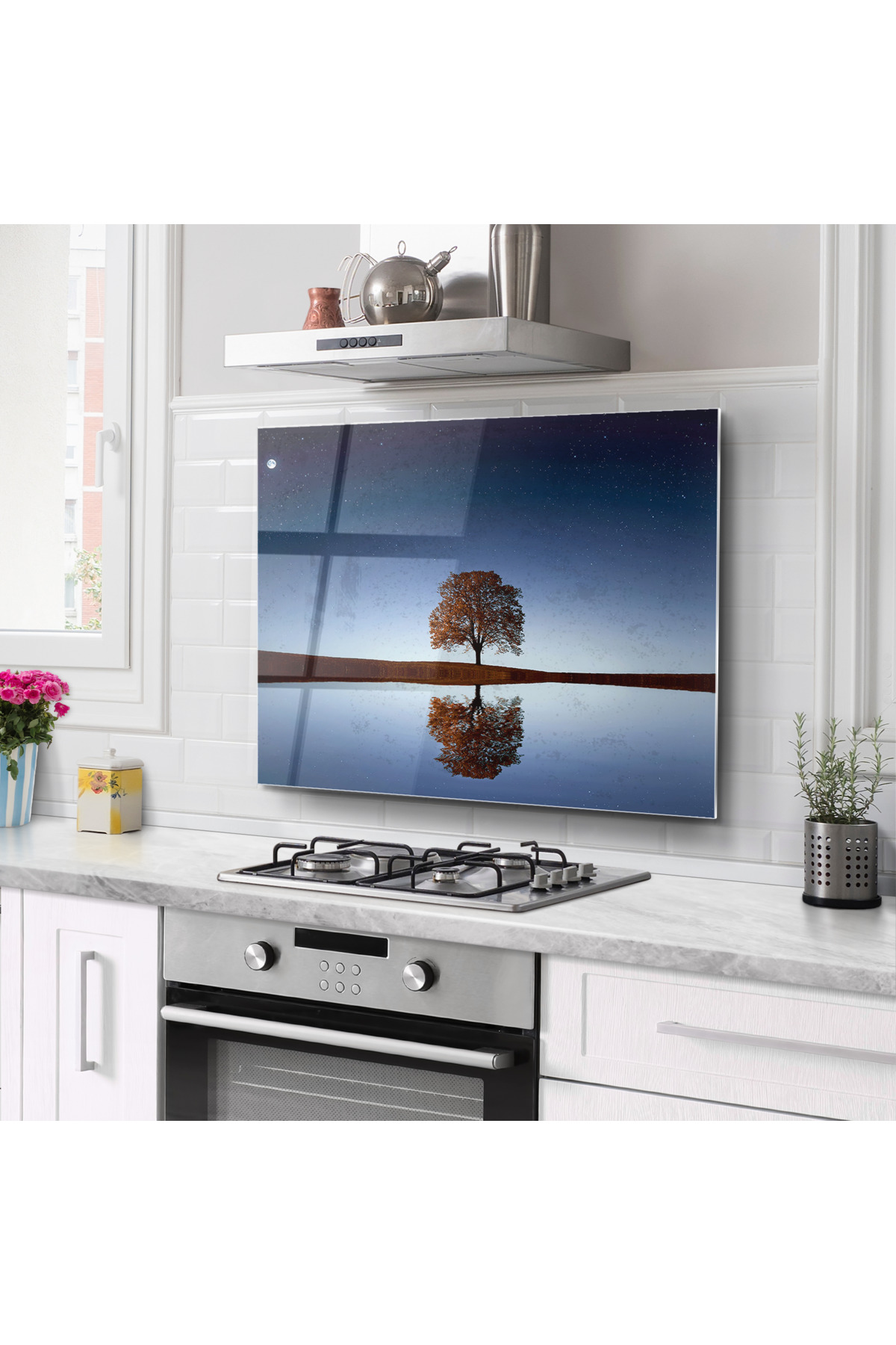 ميزات واقي خلفي لموقد الزجاج في المطبخ | نمط شجرة من DreamHomes