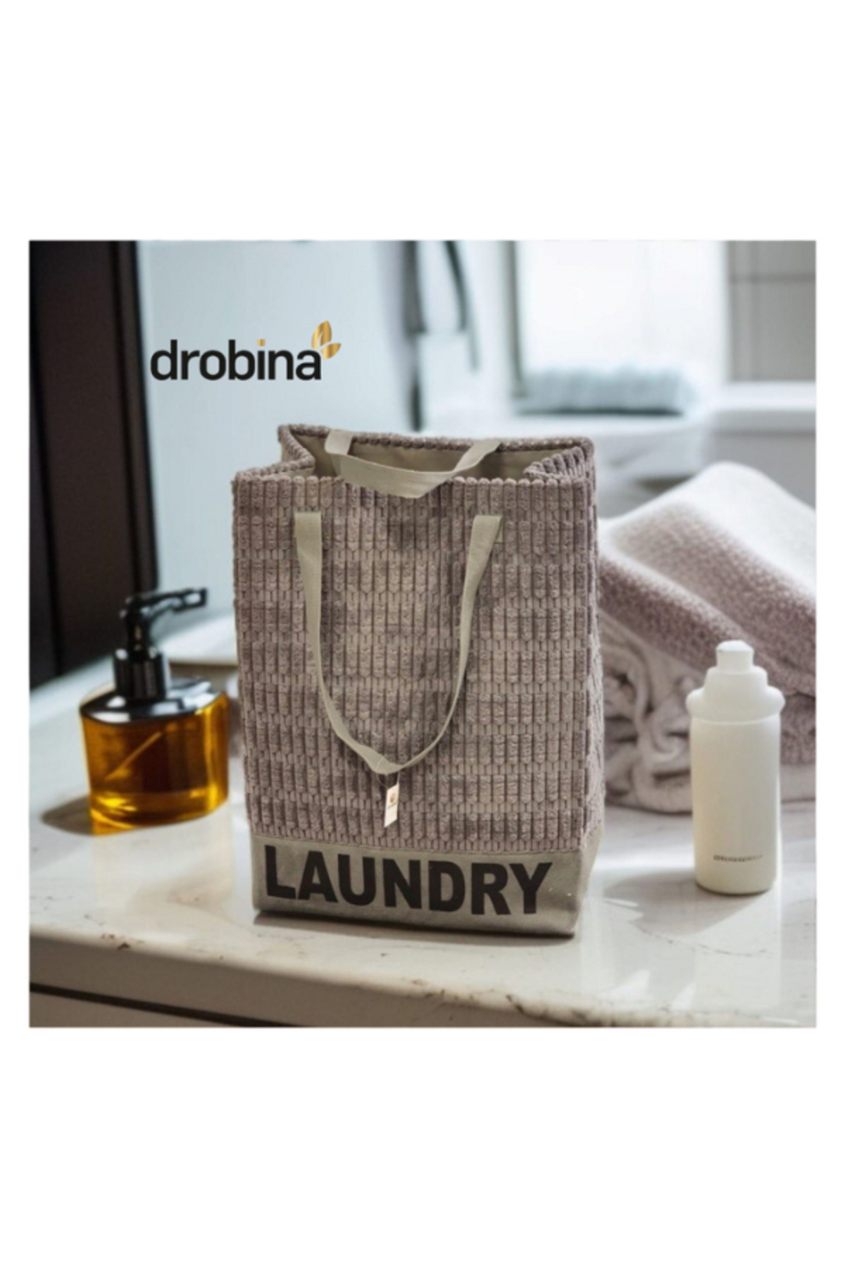 drobina سلة غسيل مستطيلة فرو رصاصي