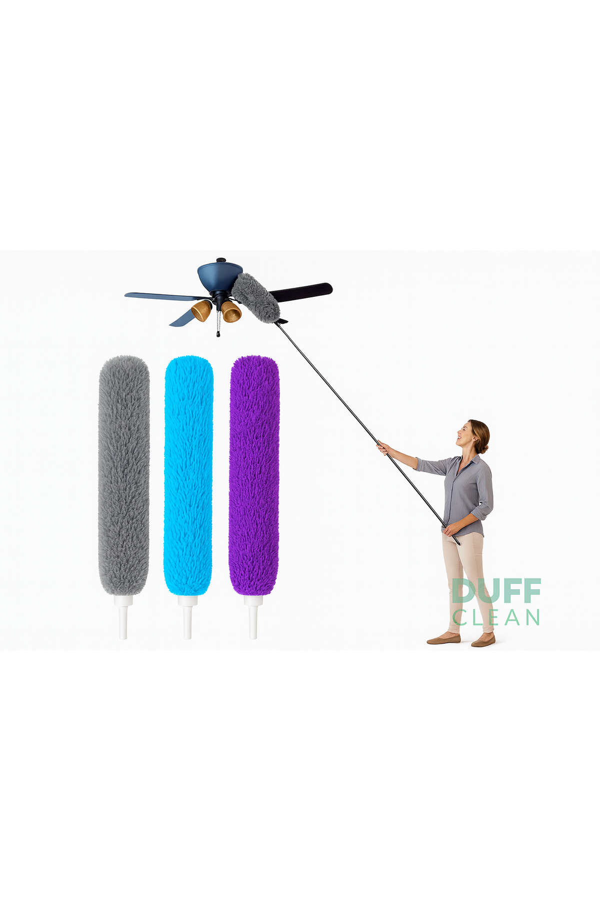 DUFF CLEAN مكنسة غبار من الألياف الدقيقة قابلة للتمديد بطول 245 سم، عملية وقابلة للانحناء