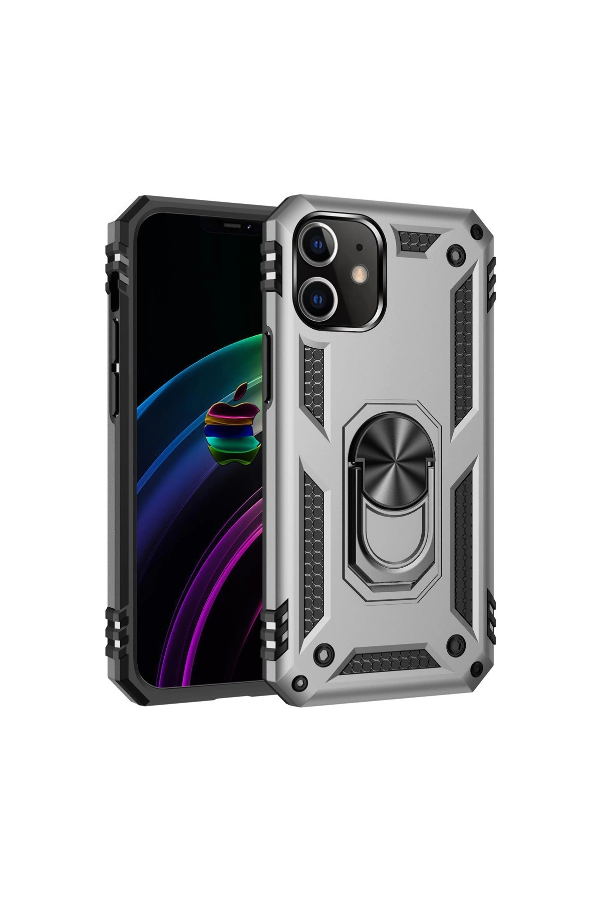 eco port جراب آيفون 12 غطاء سيليكون صوفيا مع حلقة - فضي