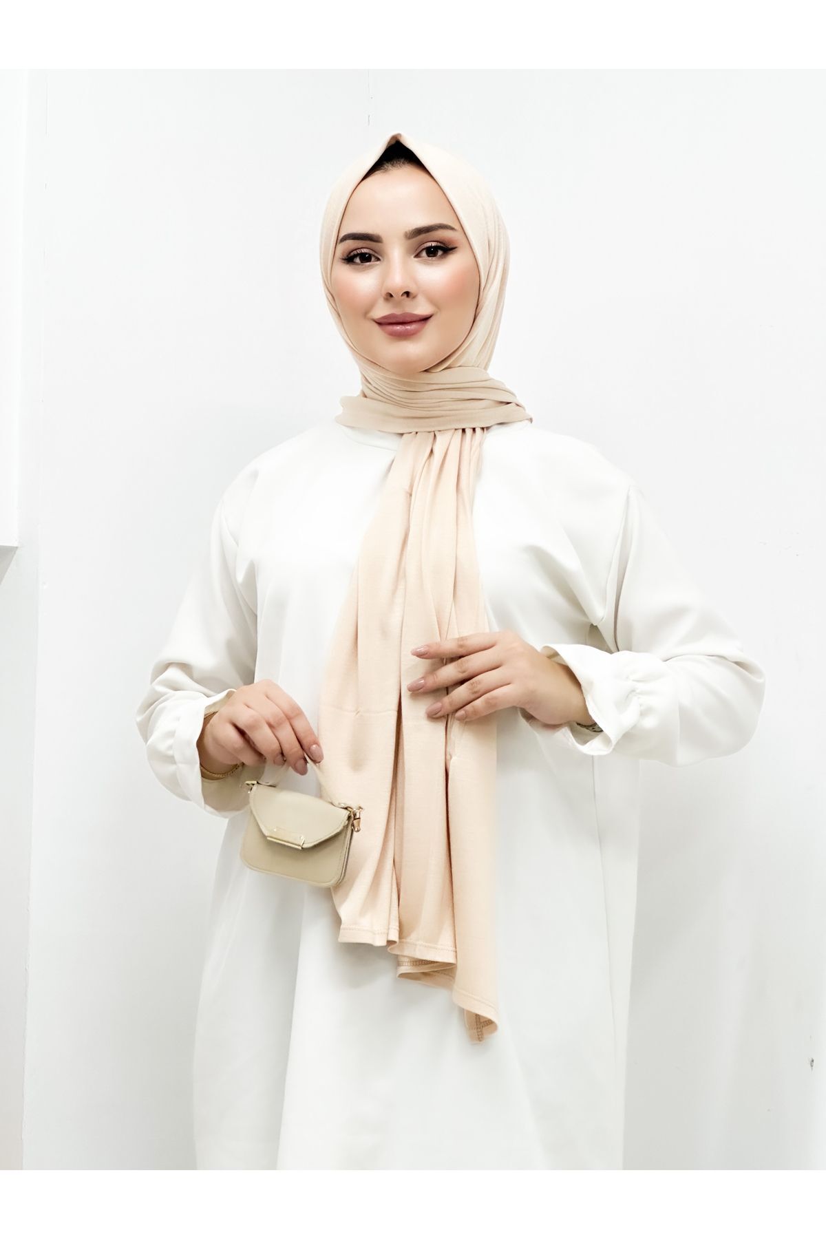 ميزات شال من القطن الممشط باللون البيج من Efdal.accessory