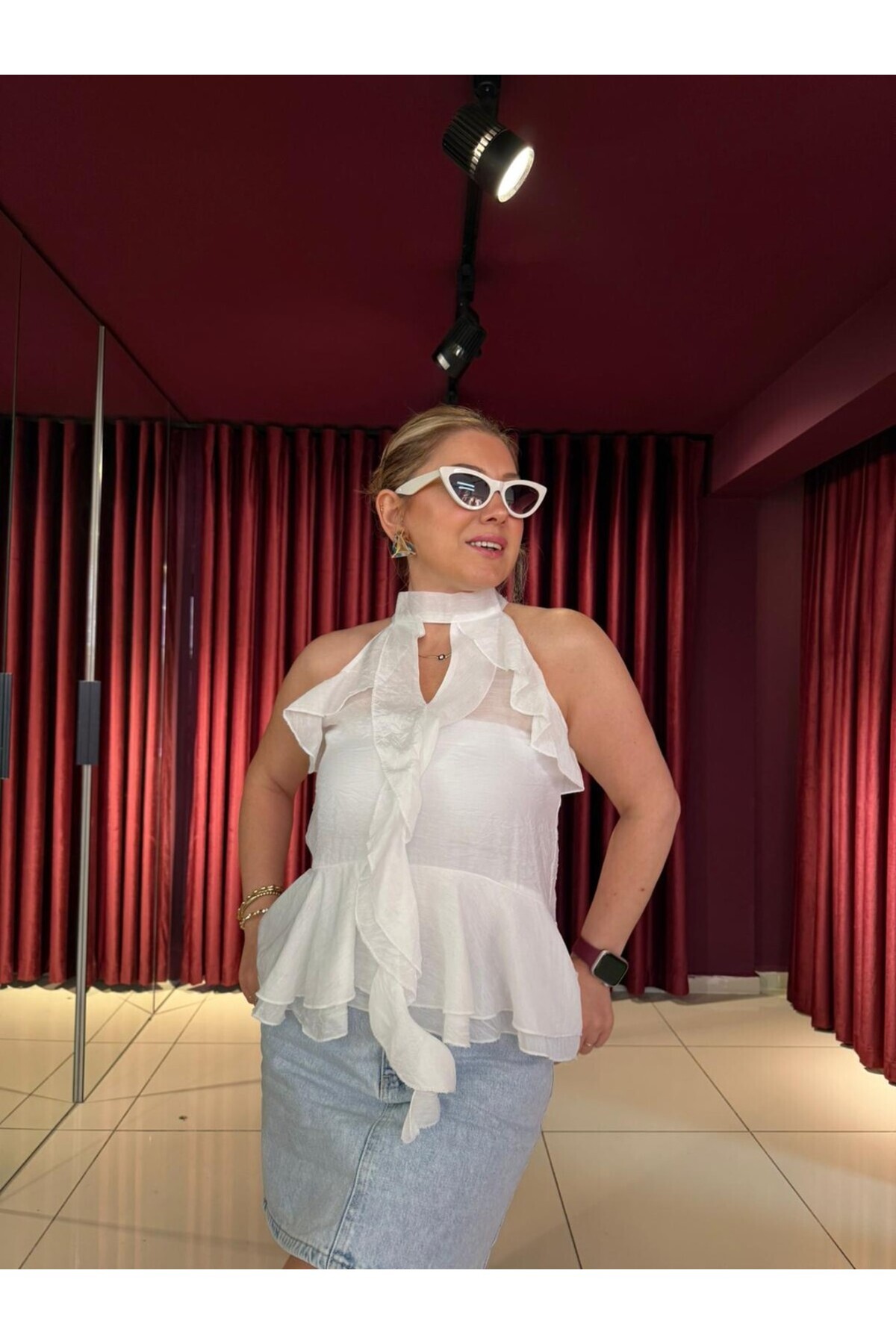 ميزات بلوزة بياقة رسن مكشكشة من EFİL