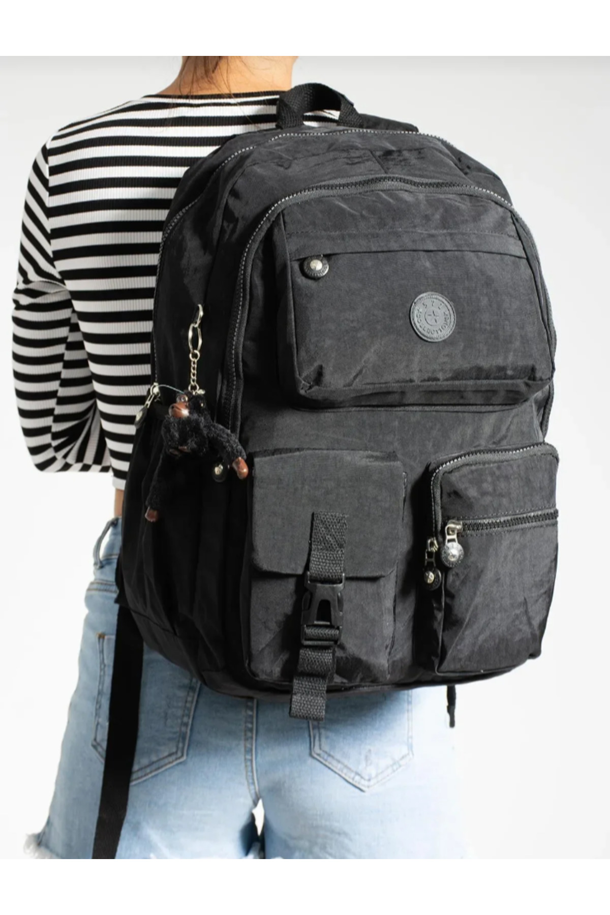 ميزات حقيبة ظهر خفيفة للغاية ومتعددة الجيوب ومقاومة للماء باللون الأسود من eflanmoda