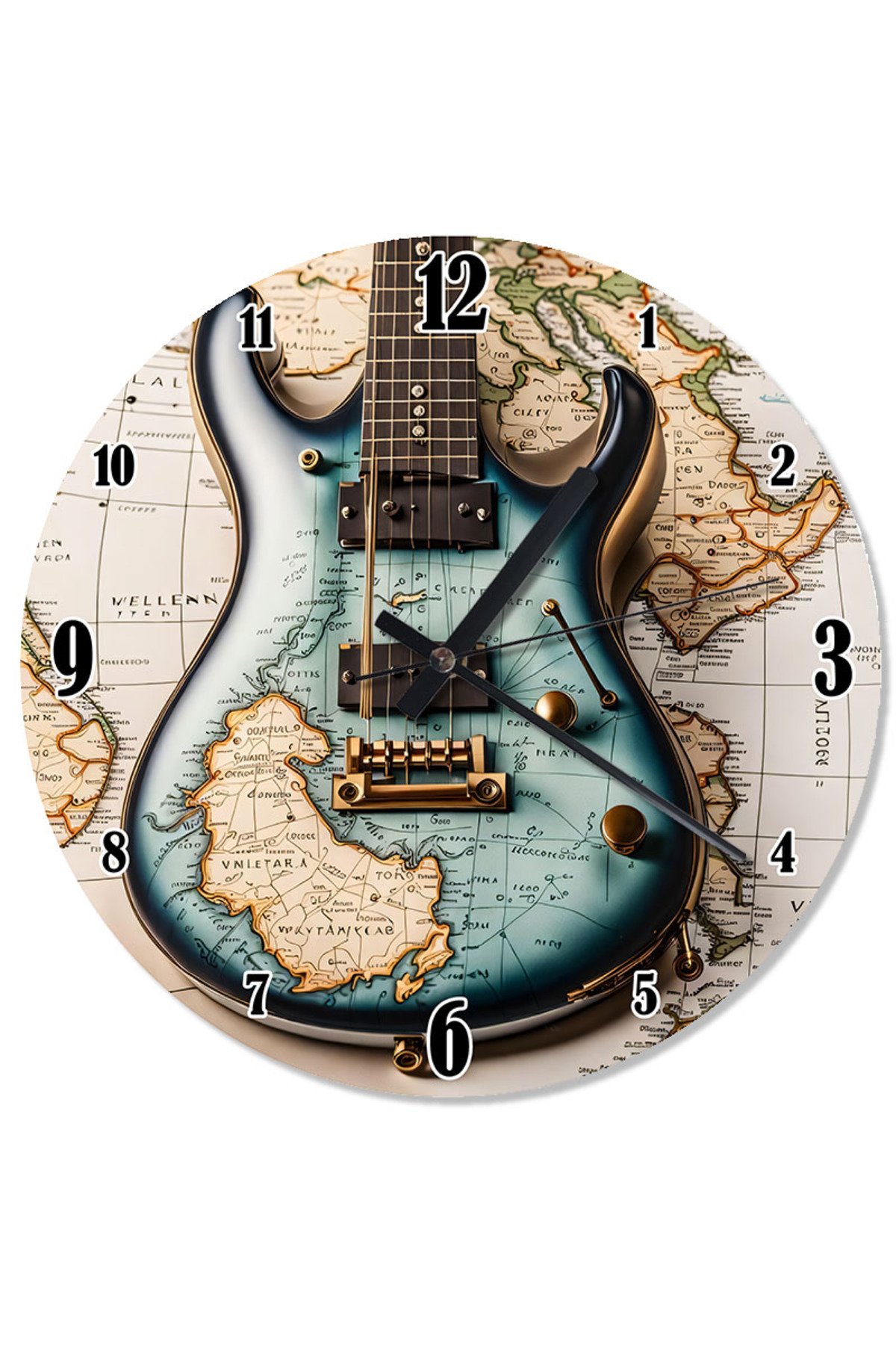 ekart ساعة حائط على شكل خريطة جيتار