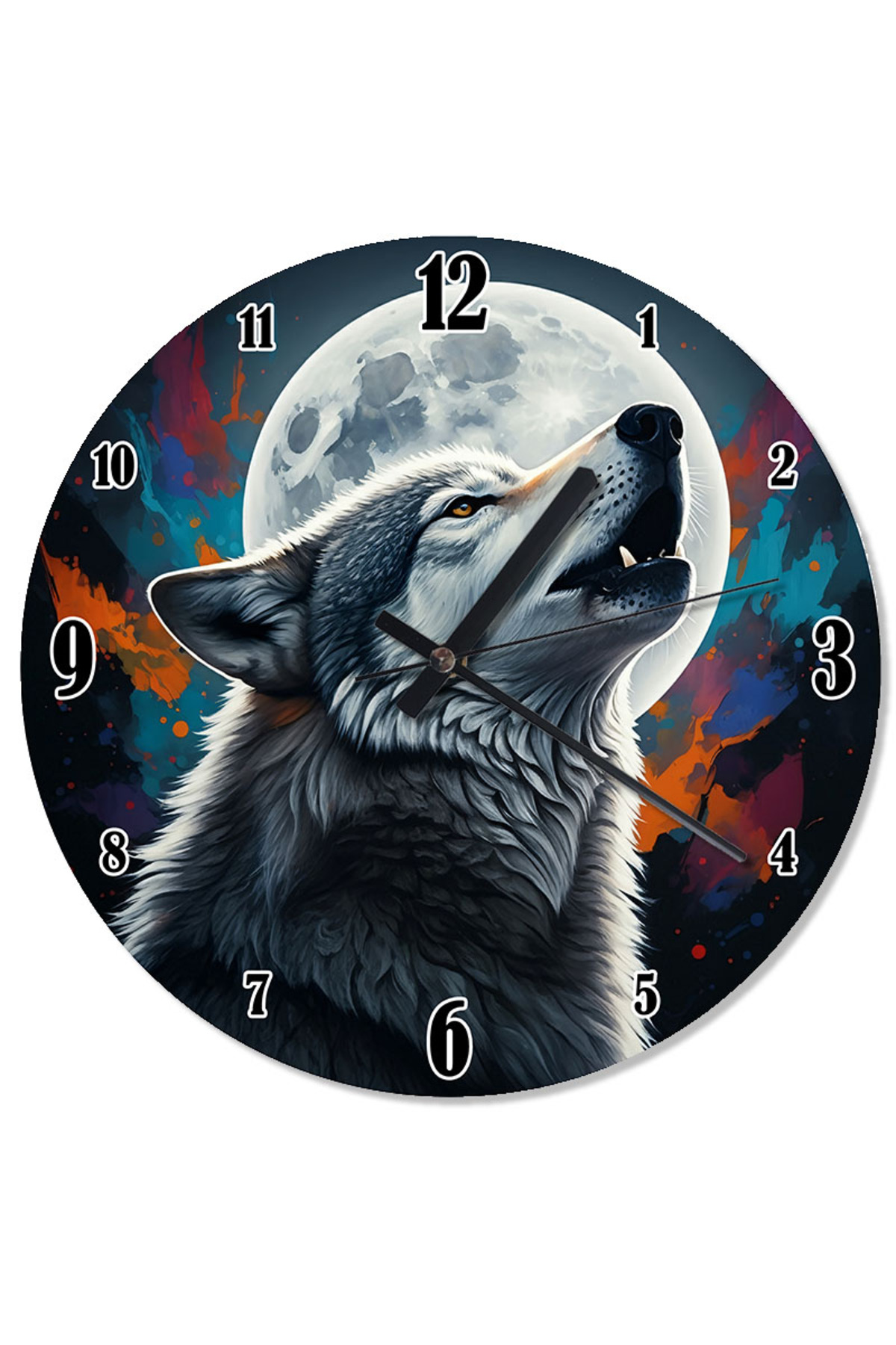 ekart ساعة حائط بتصميم الذئب ينبح في ضوء القمر
