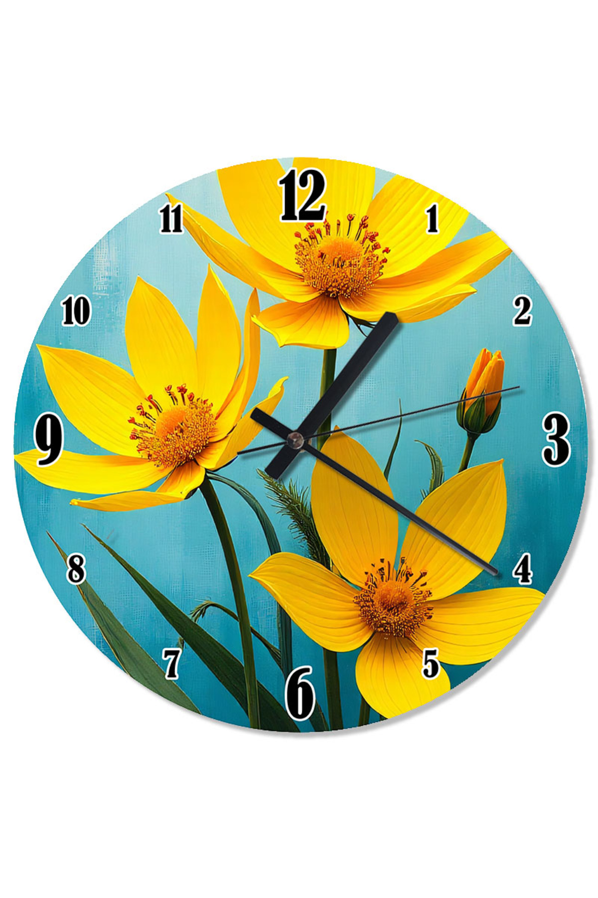 ekart ساعة حائط مطبوعة بالزهور الصفراء