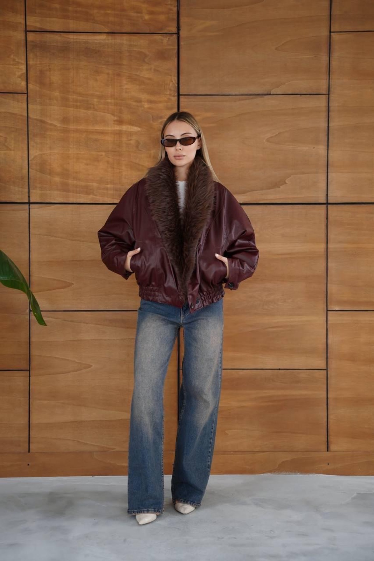 ميزات سترة جلدية مع ياقة فرو من Ekim Store