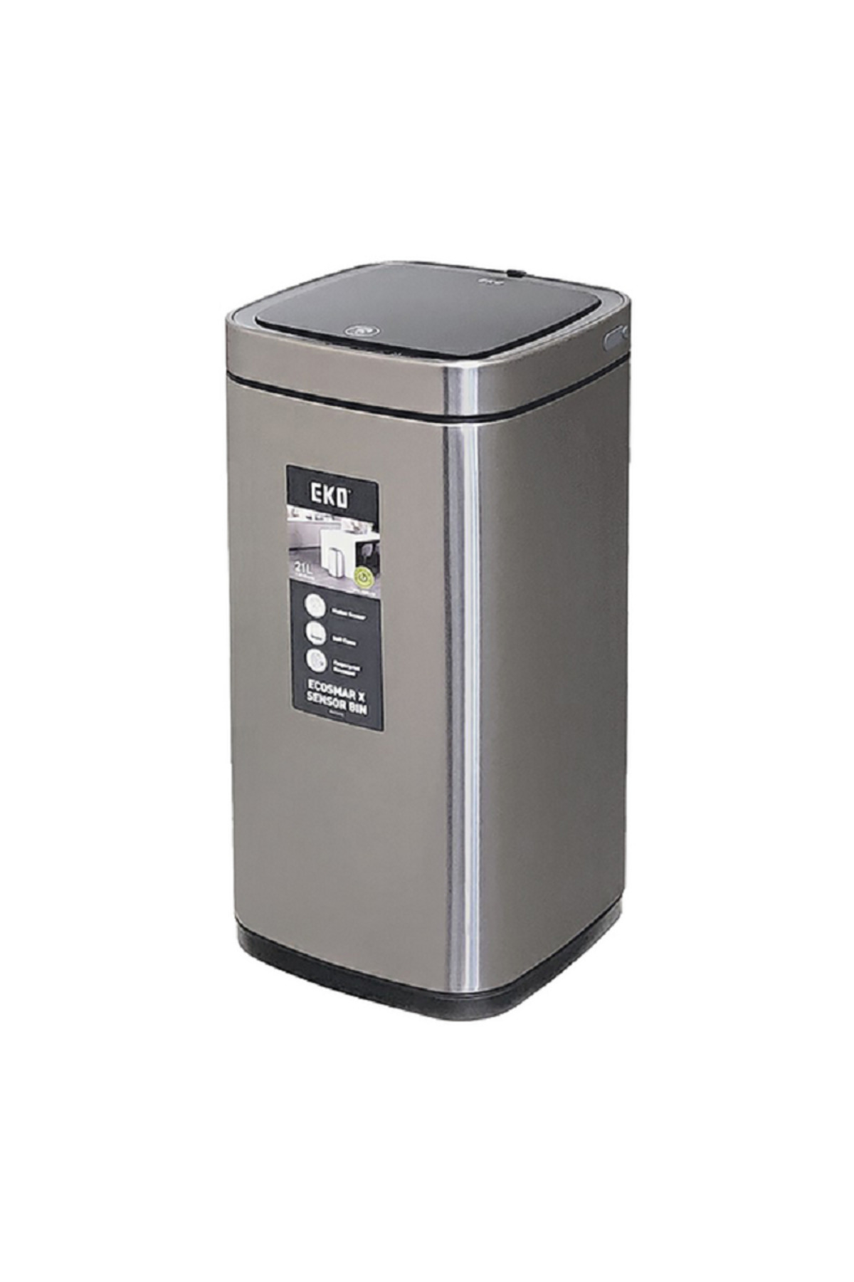 ميزات سلة مهملات مستطيلة الشكل من الفولاذ المقاوم للصدأ قابلة لإعادة الشحن تعمل بالبطارية من EKO