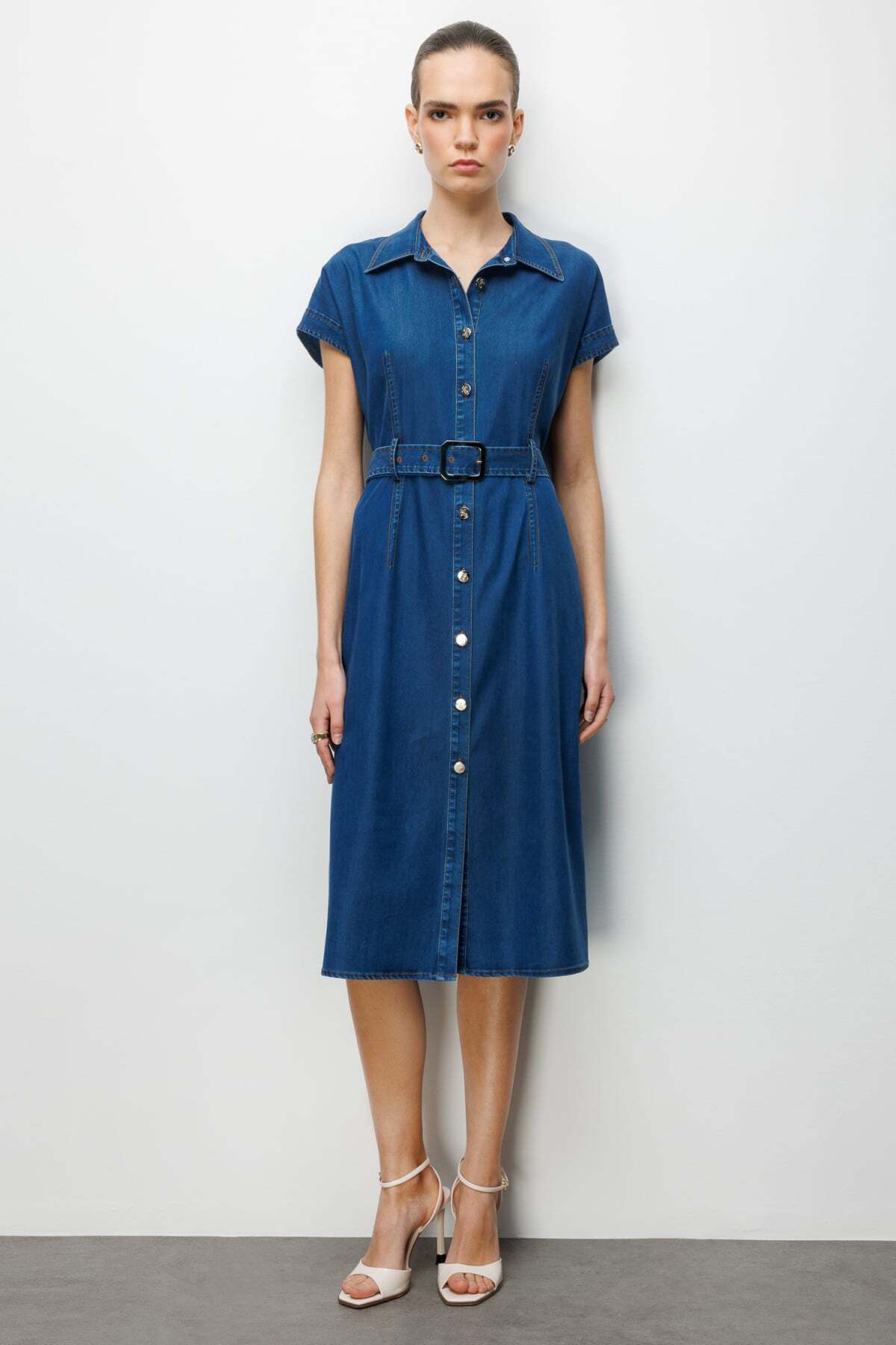 ميزات فستان بحزام وأزرار أمامية من Ekol