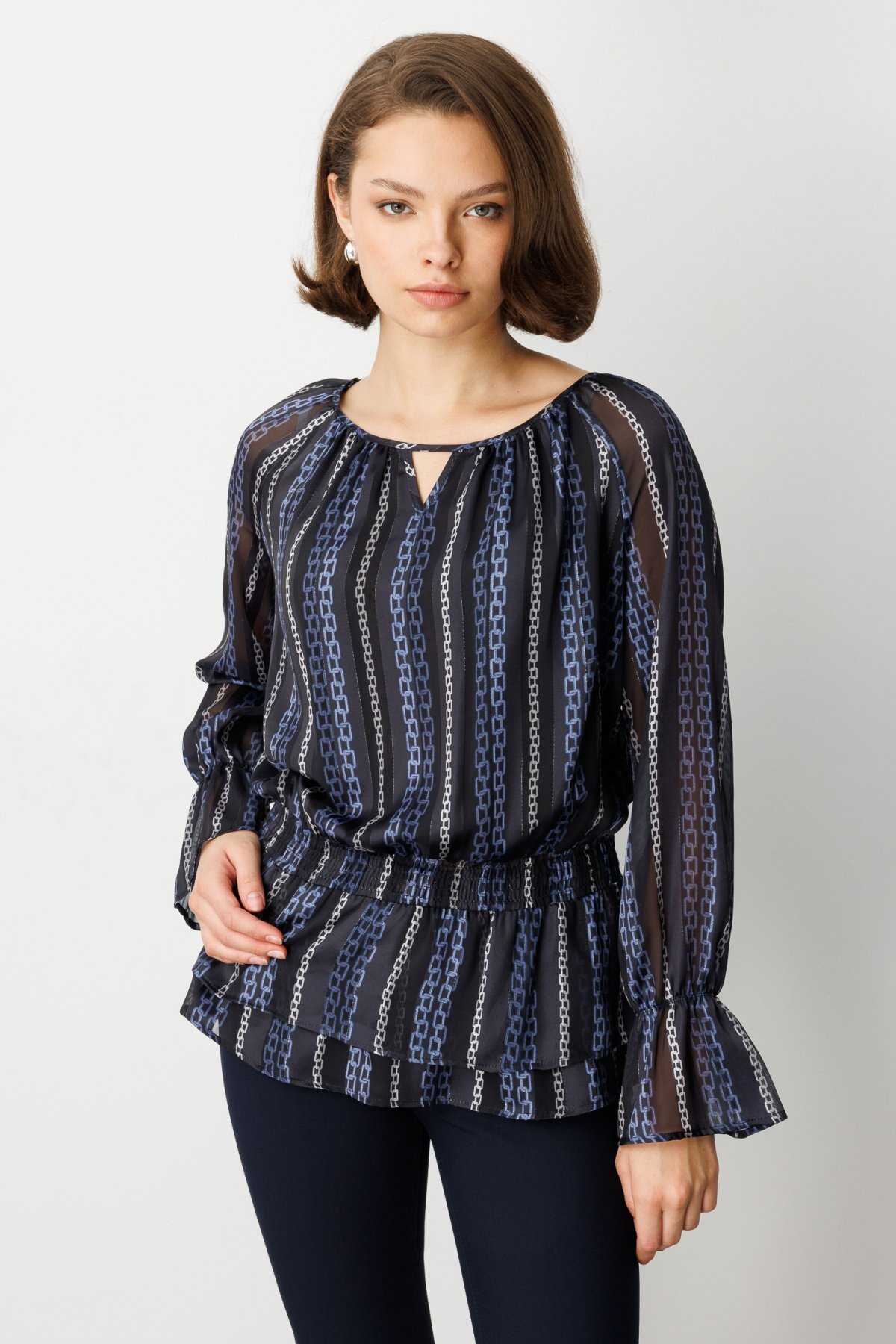 ميزات بلوزة شيفون منقوشة برباط عند الخصر من Ekol